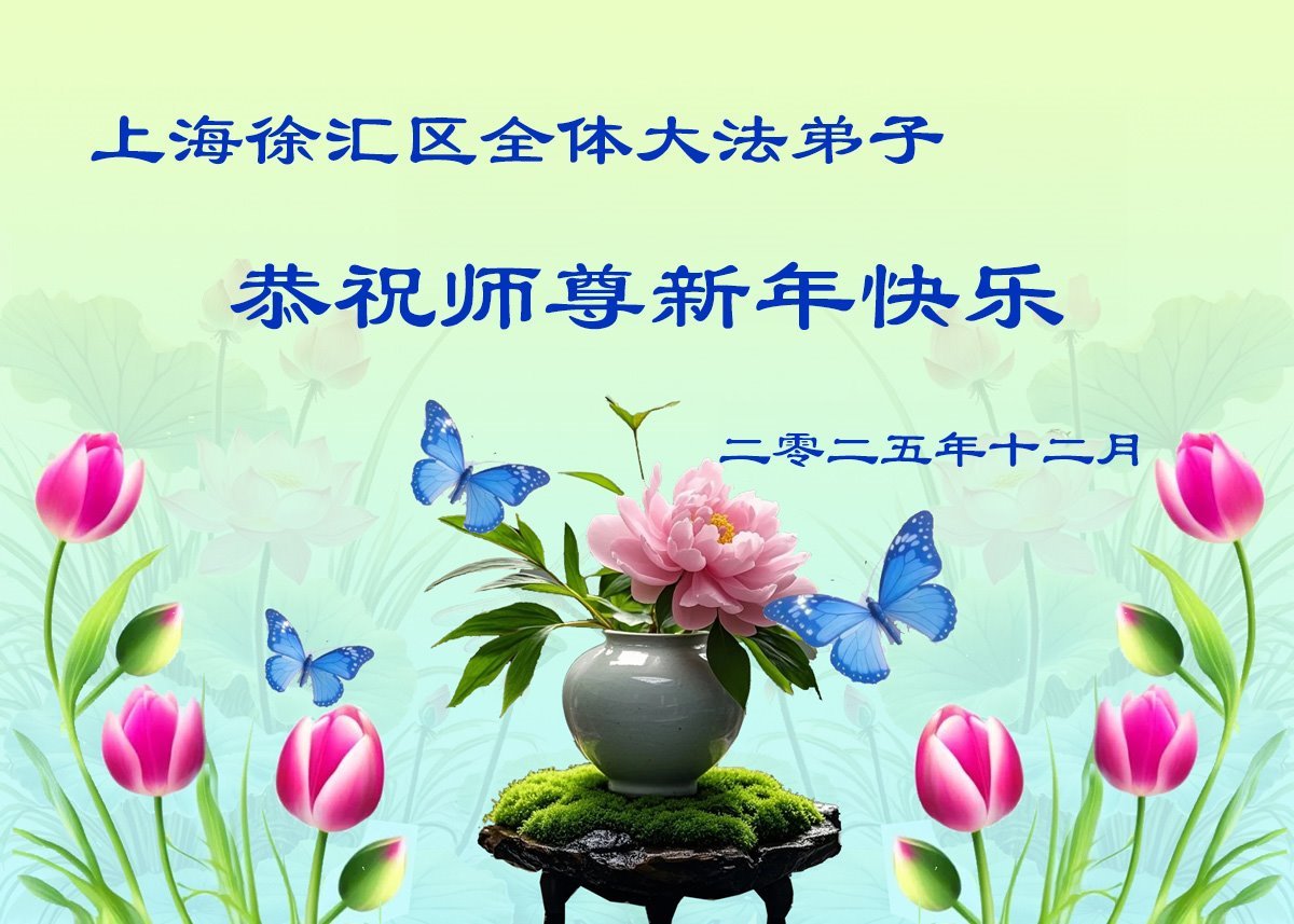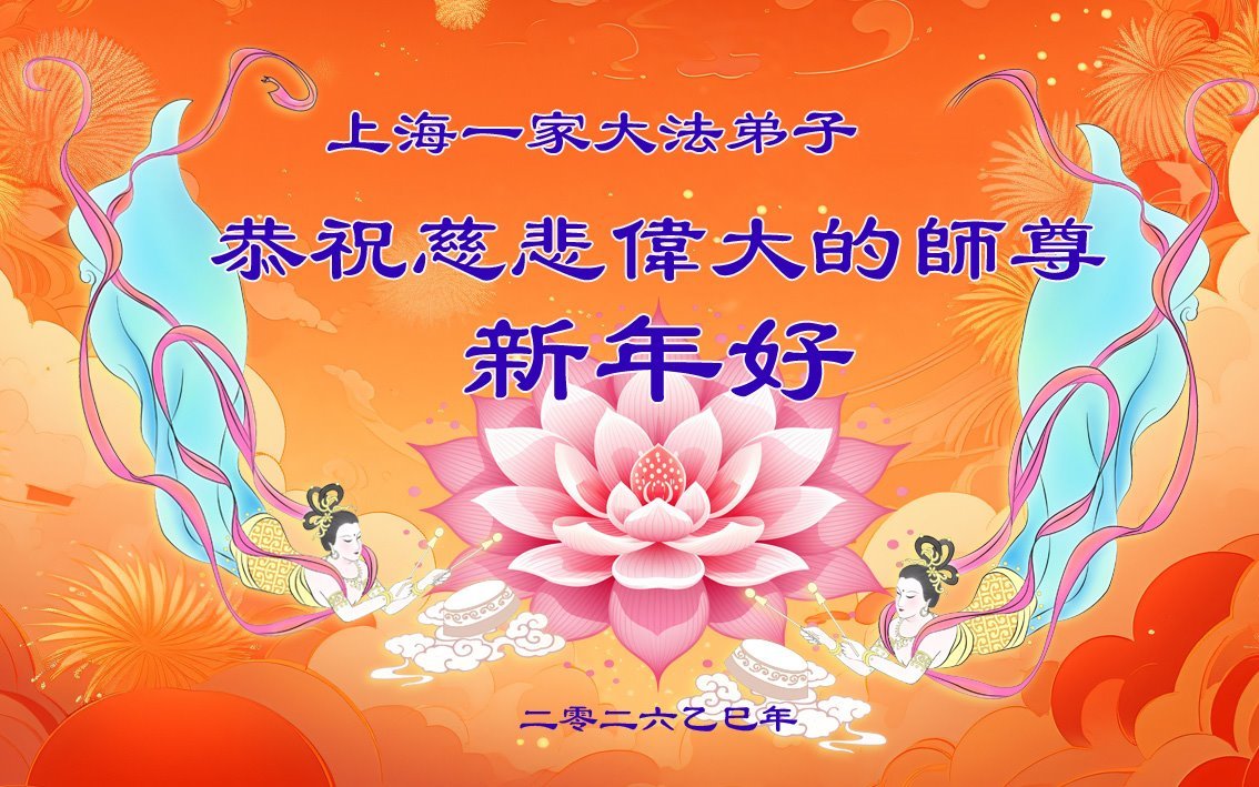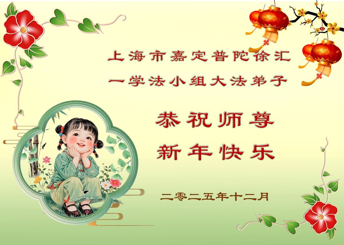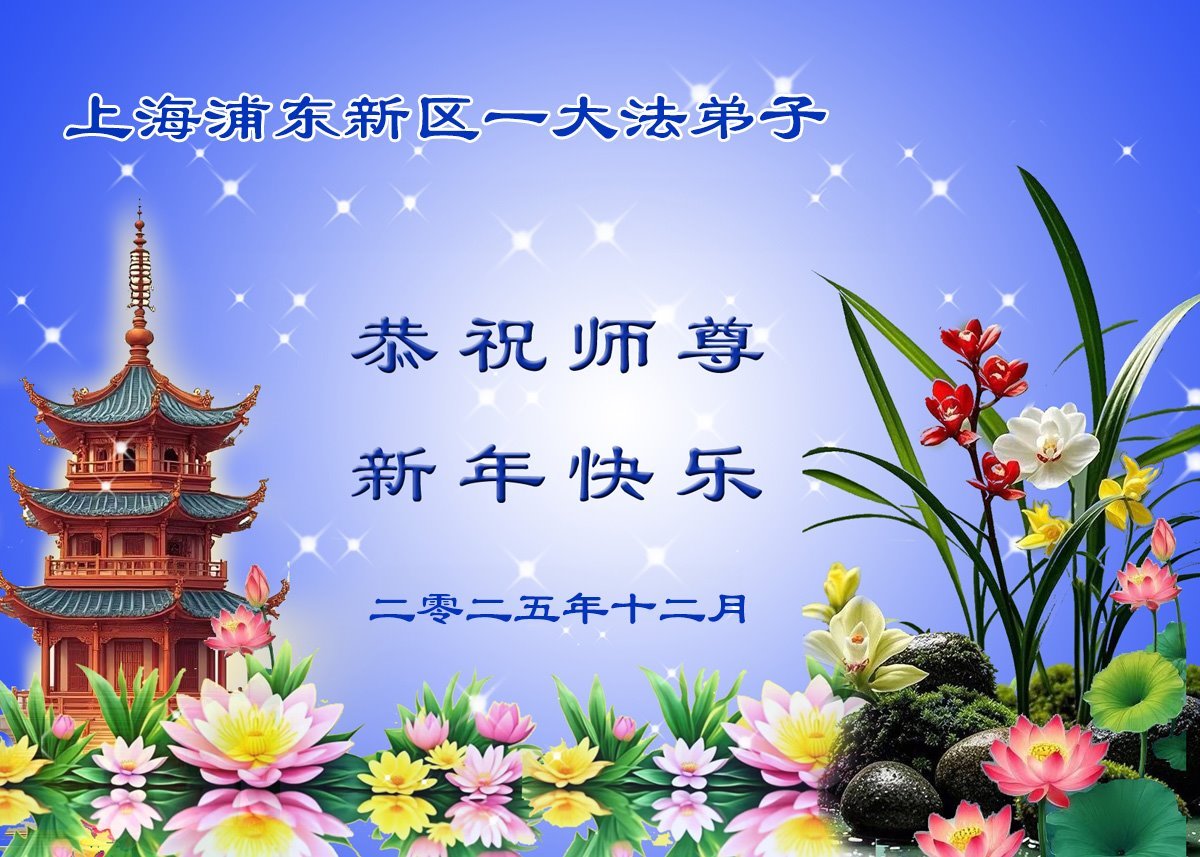 Falun Dafa praktikanti iz Šangaja s poštovanjem žele Učitelju Li Hongdžiju srećnu Novu godinu (37 čestitki)