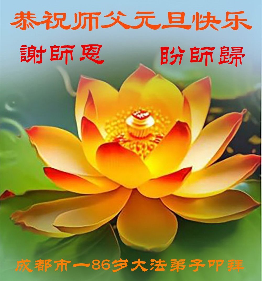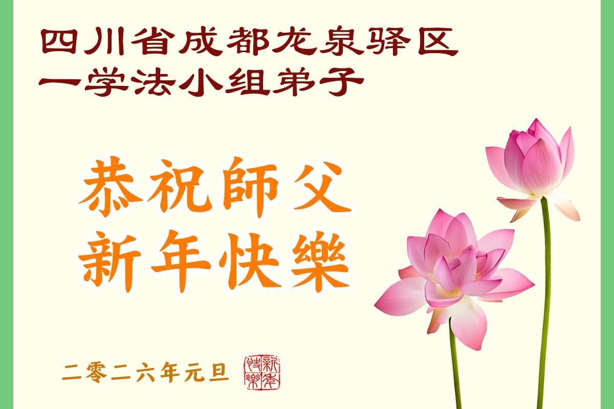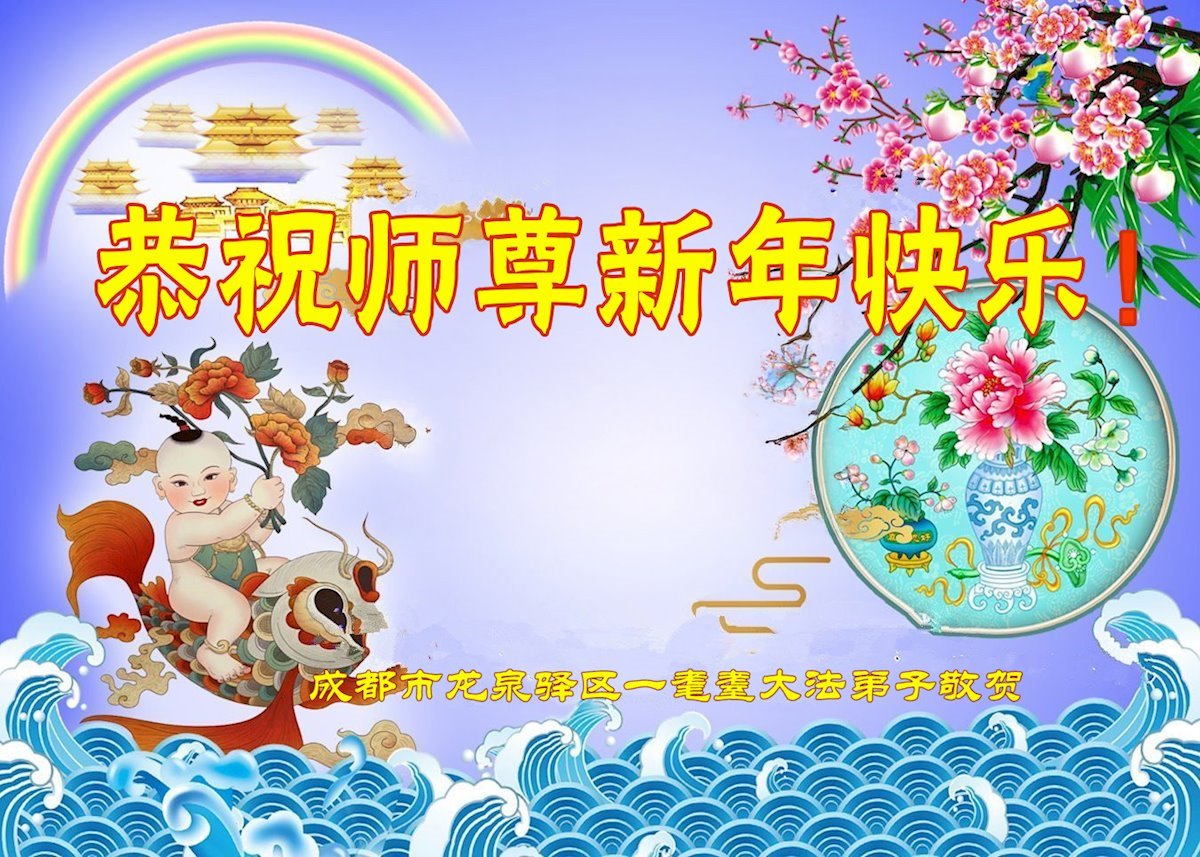 Falun Dafa praktikanti iz grada Čengdua s poštovanjem žele Učitelju Li Hongdžiju srećnu Novu godinu (102 čestitke)