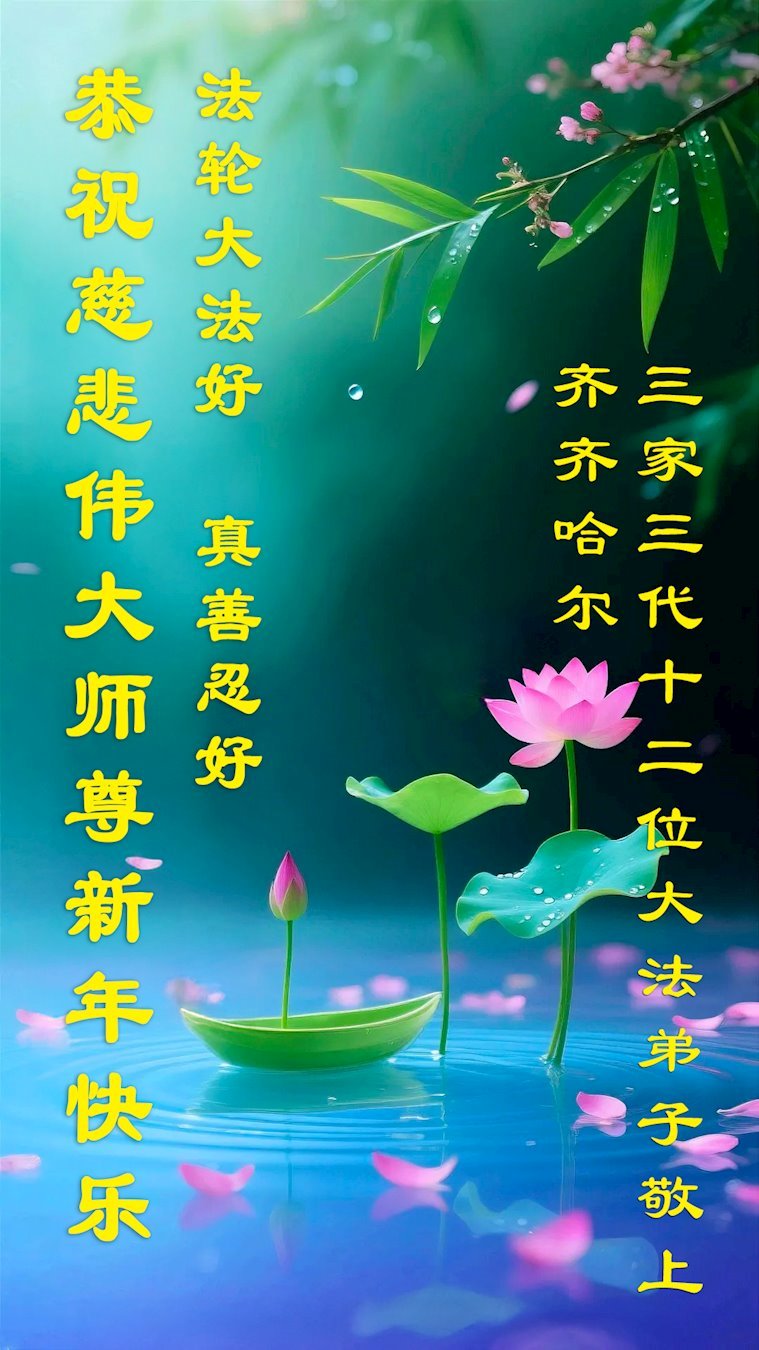 Falun Dafa praktikanti iz provincije Hejlungđang s poštovanjem žele Učitelju Li Hongdžiju srećnu Novu godinu (110 čestitki)