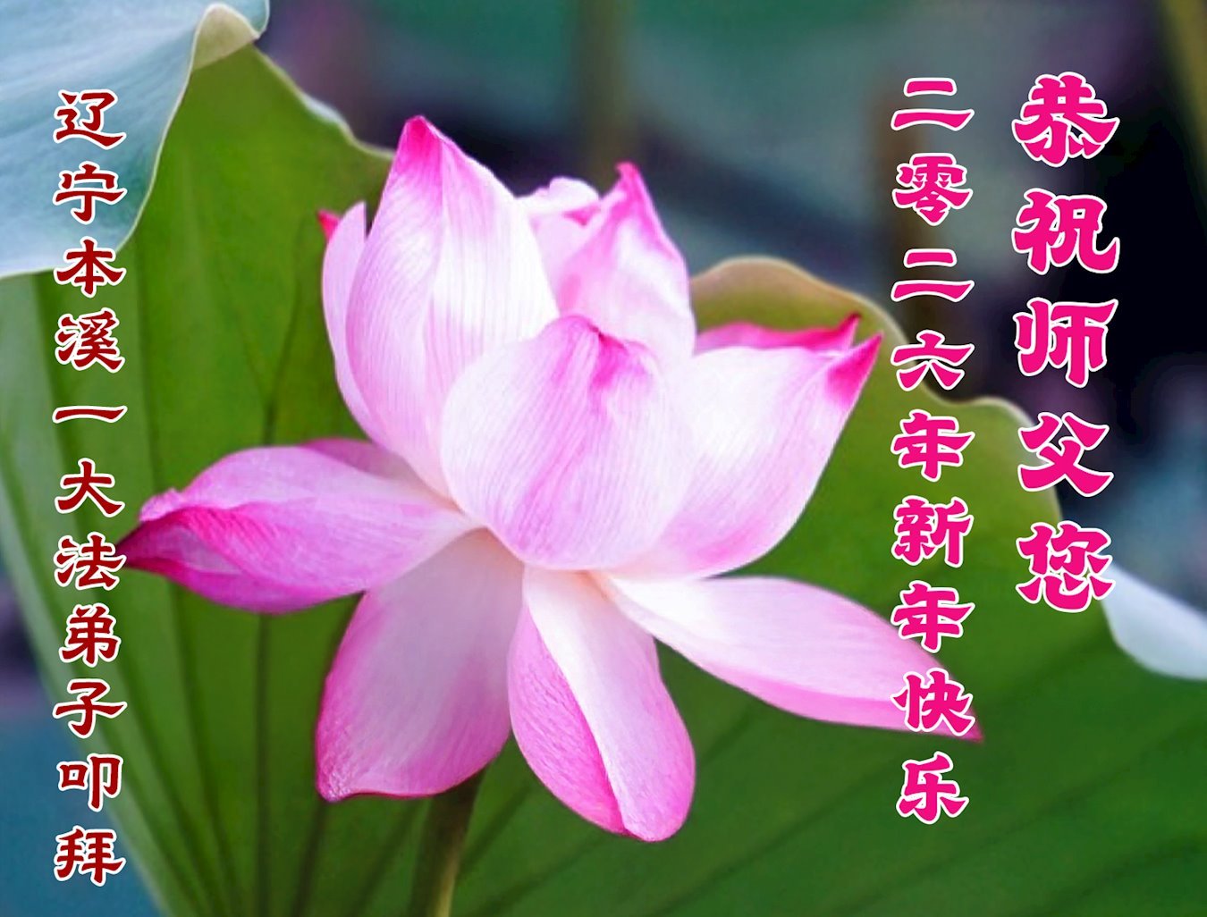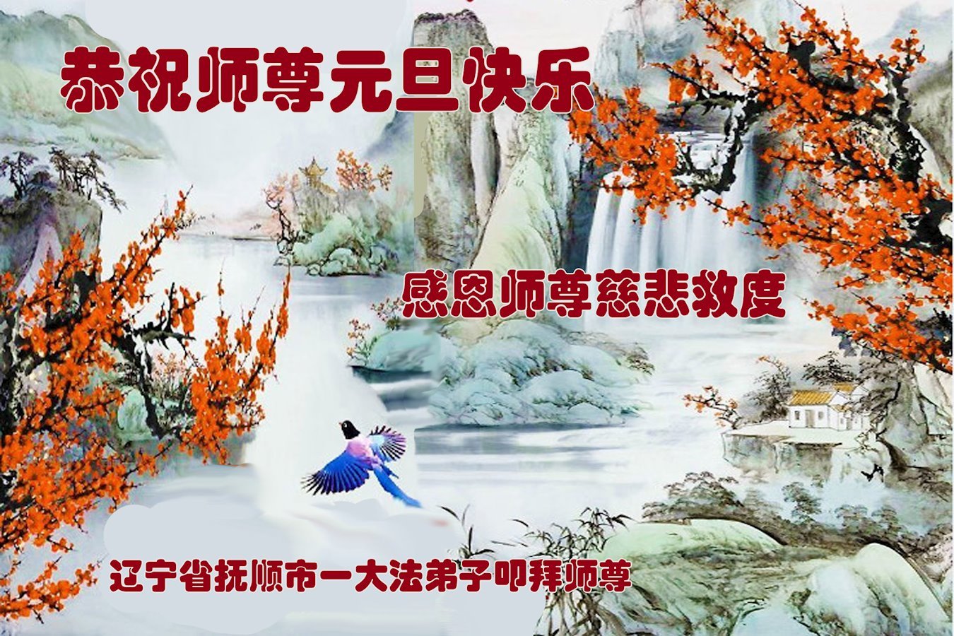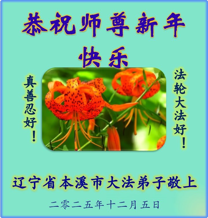 Falun Dafa praktikanti iz provincije Liaoning s poštovanjem žele Učitelju Li Hongdžiju srećnu Novu godinu (108 čestitki)