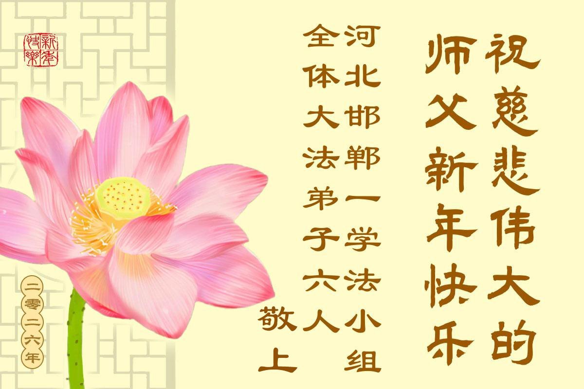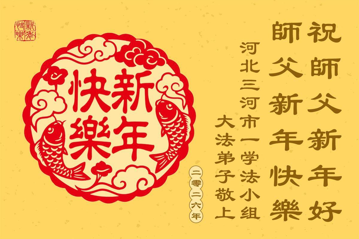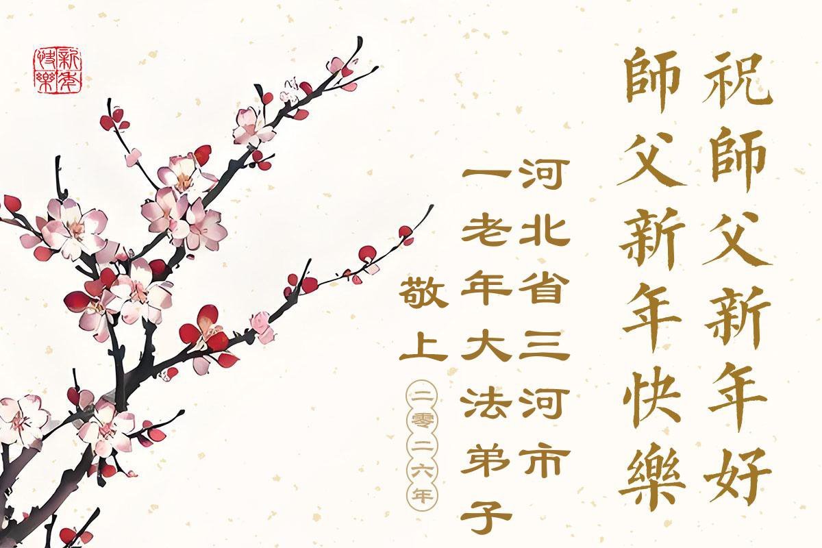 Falun Dafa praktikanti iz provincije Hebej s poštovanjem žele Učitelju Li Hongdžiju srećnu Novu godinu (108 čestitki)