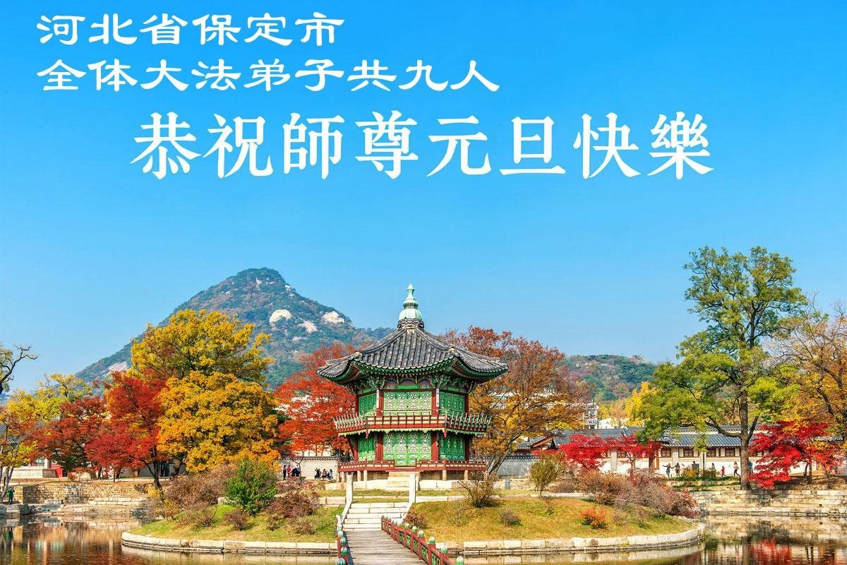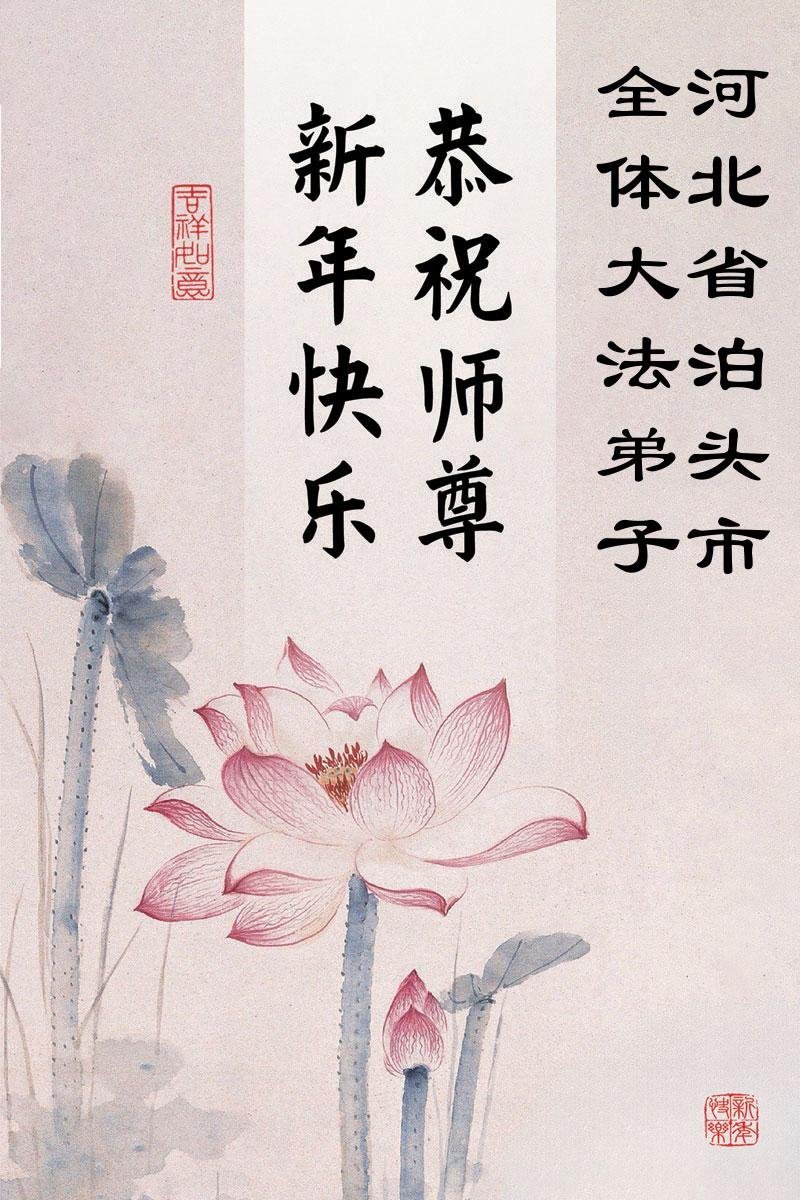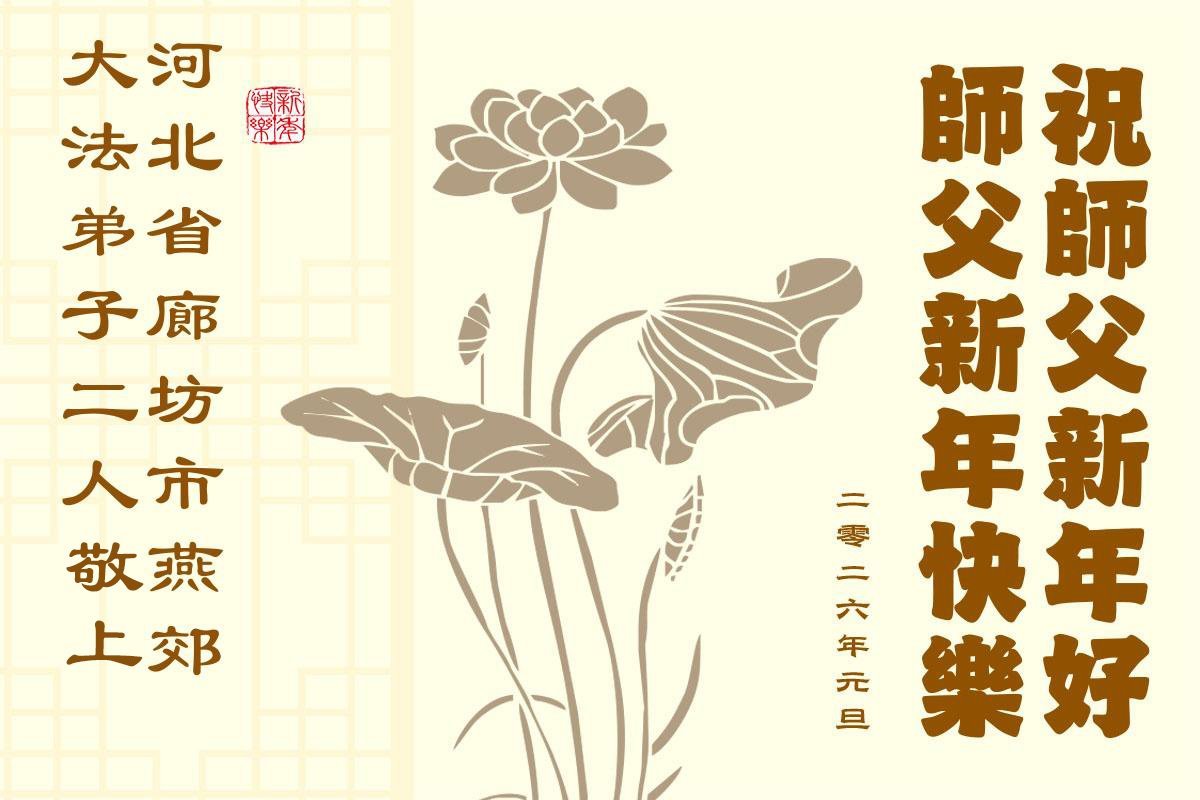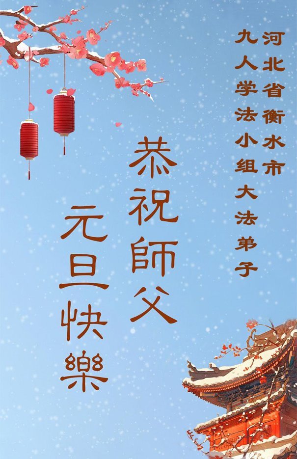 Falun Dafa praktikanti iz provincije Hebej s poštovanjem žele Učitelju Li Hongdžiju srećnu Novu godinu (108 čestitki)