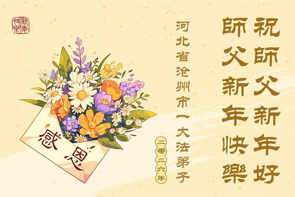 Falun Dafa praktikanti iz provincije Hebej s poštovanjem žele Učitelju Li Hongdžiju srećnu Novu godinu (114 čestitki)