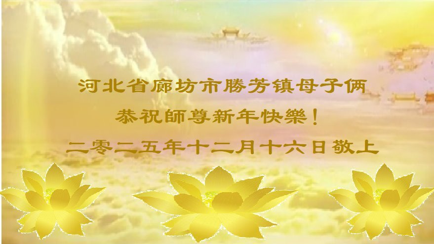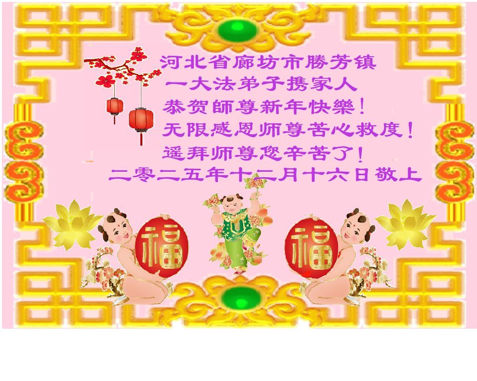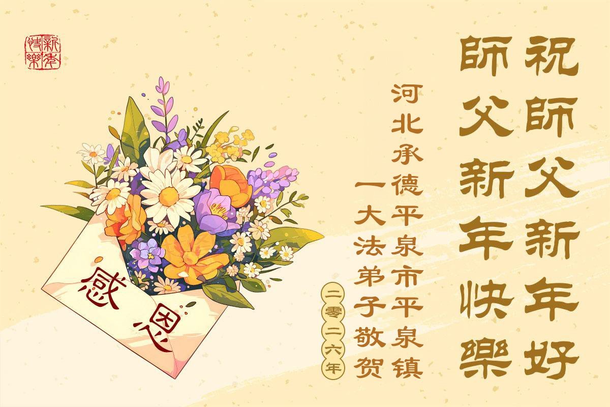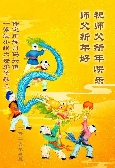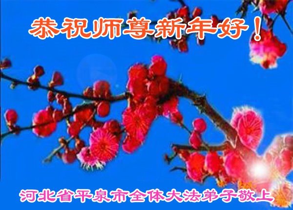 Falun Dafa praktikanti iz provincije Hebej s poštovanjem žele Učitelju Li Hongdžiju srećnu Novu godinu (110 čestitki)
