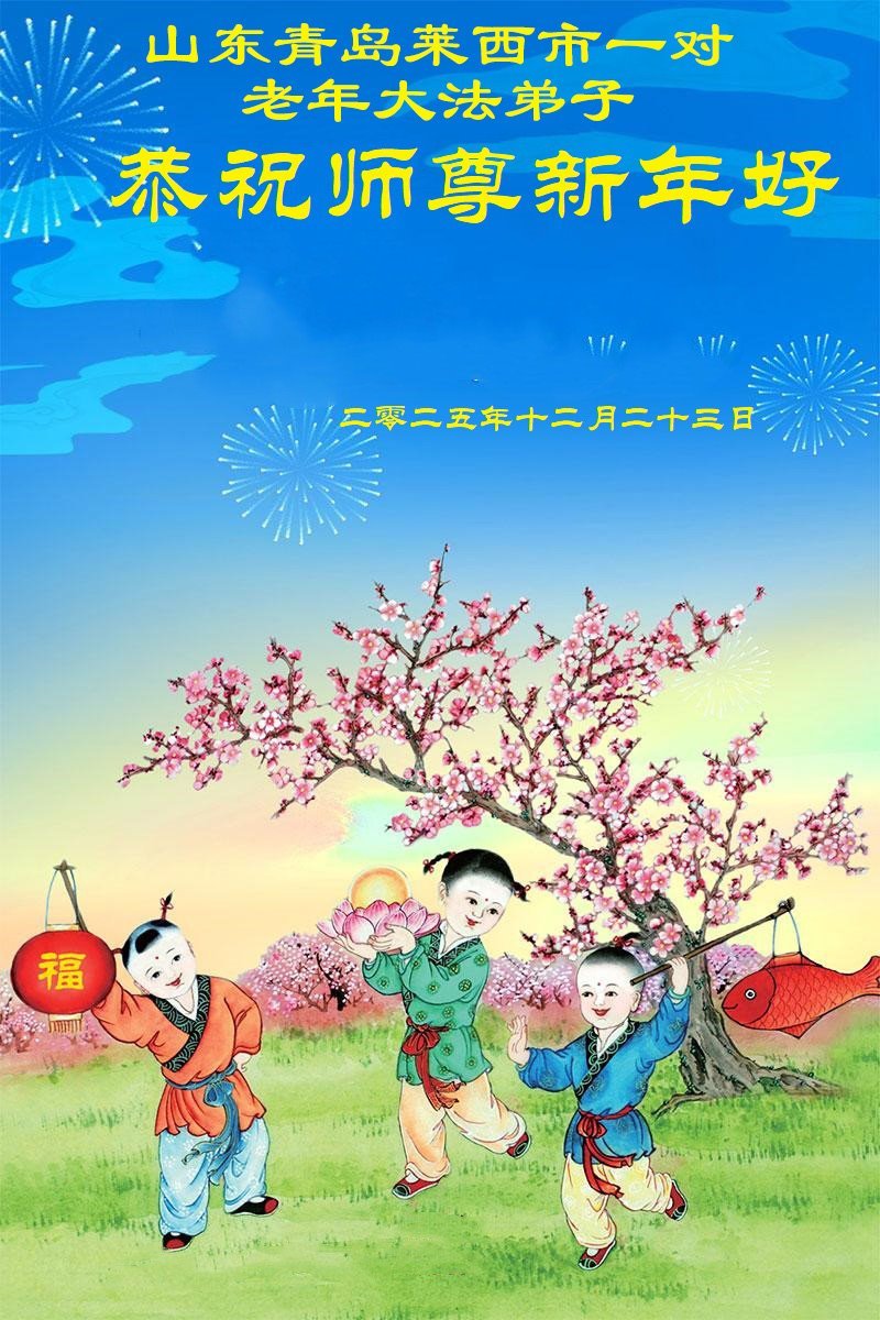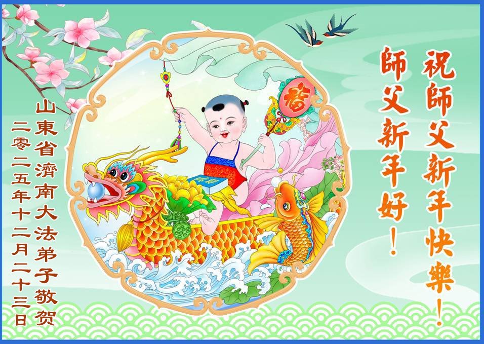 Falun Dafa praktikanti iz provincije Šandong s poštovanjem žele Učitelju Li Hongdžiju srećnu Novu godinu (111 čestitki)