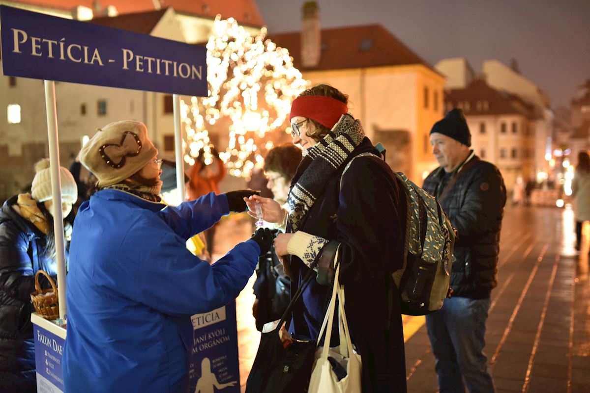Anežka Vemkova, psiholog, koja se zaustavila kod štanda u Bratislavi, odlučila je da doda svoj potpis peticiji. Za progon je saznala od svog zeta. Rekla je: „Meditacija mi je bliska srcu i mislim da je važno da sloboda ljudi nije ograničena.“ Dodala je: „Vrednosti istinitosti, blagosti i trpeljivosti su veoma korisne za društvo.“