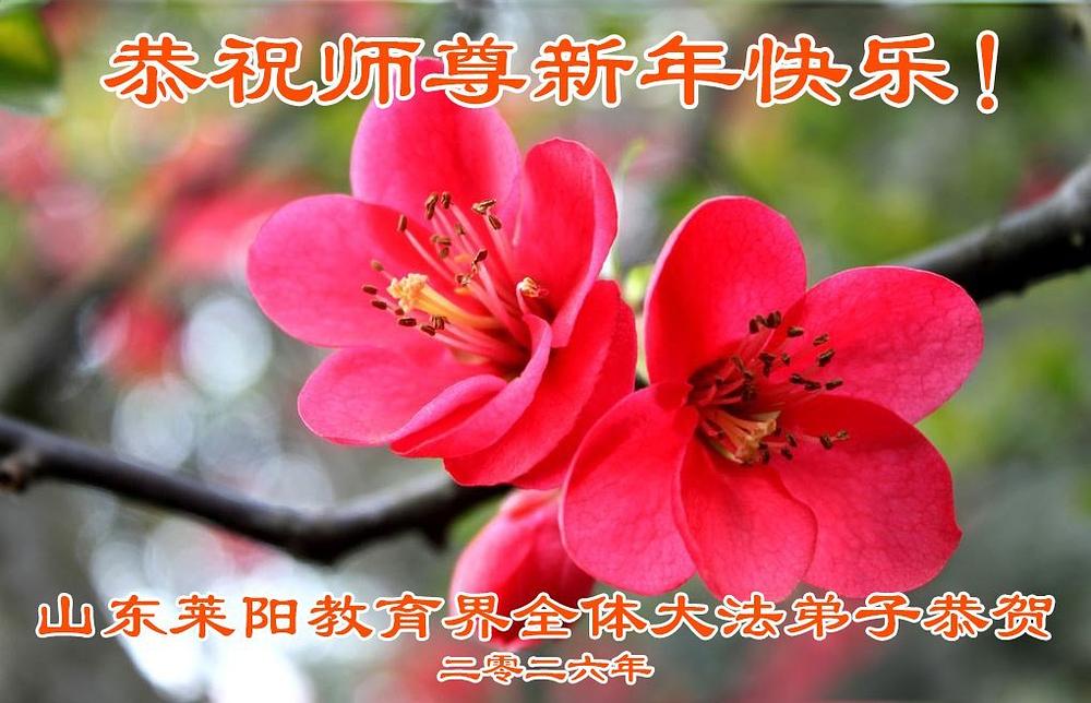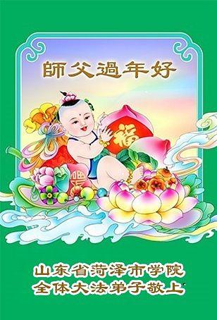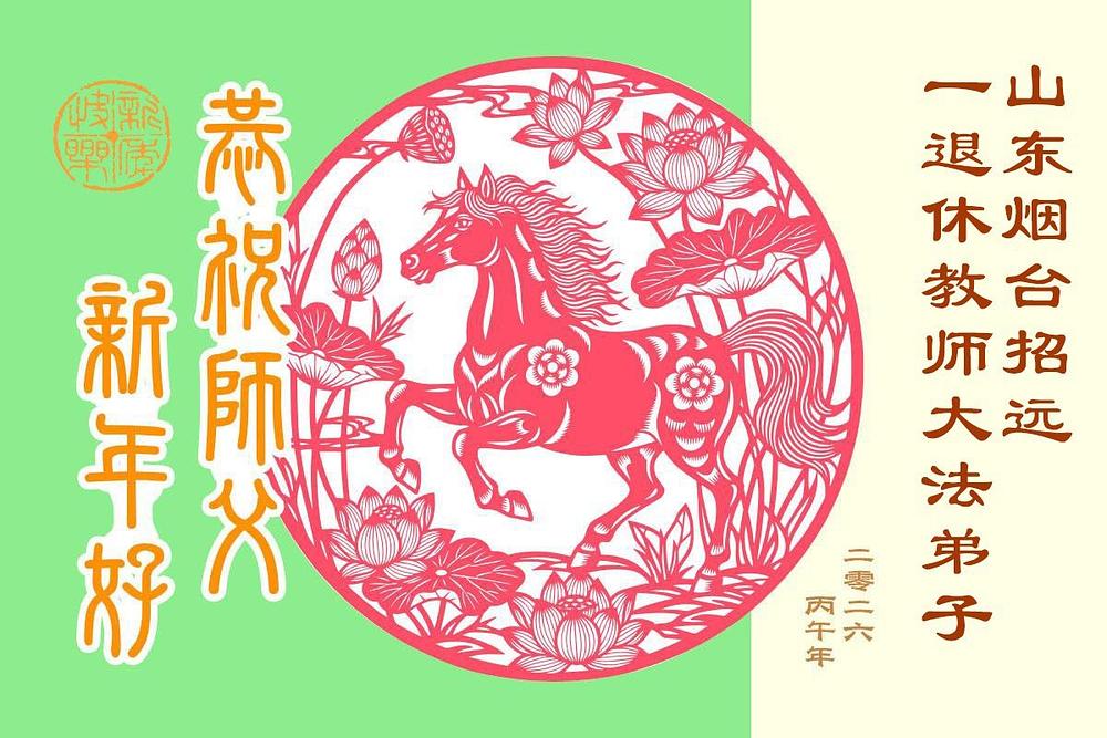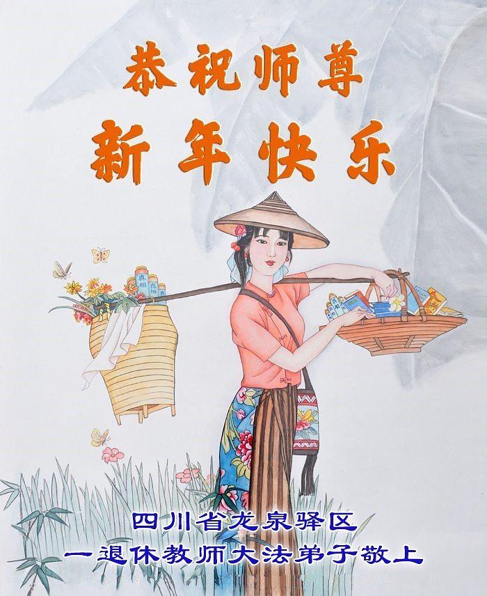 „Želimo Učitelju srećnu Novu godinu! Svi Dafa učenici razumeju svoju odgovornost. Iako su teškoće velike, mi racionalno i mudro koristimo različite načine da pomognemo u spasavanju više ljudi, ispunimo svoje zavete, završimo svoju misiju i dovedemo mnoga živa bića do ispunjenja dok se vraćamo kući sa Učiteljem.“