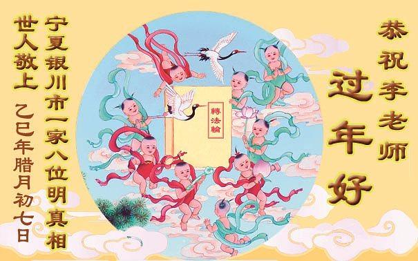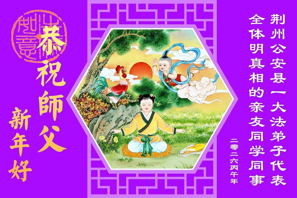 Pristalice Falun Dafe iz Tjenđina, Čongkinga, Junana, Ningsije, Anhuija, Šansija, Đangsija, Henana, Hunana i Gansua žele poštovanom učitelju srećnu Novu godinu!