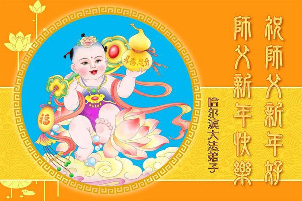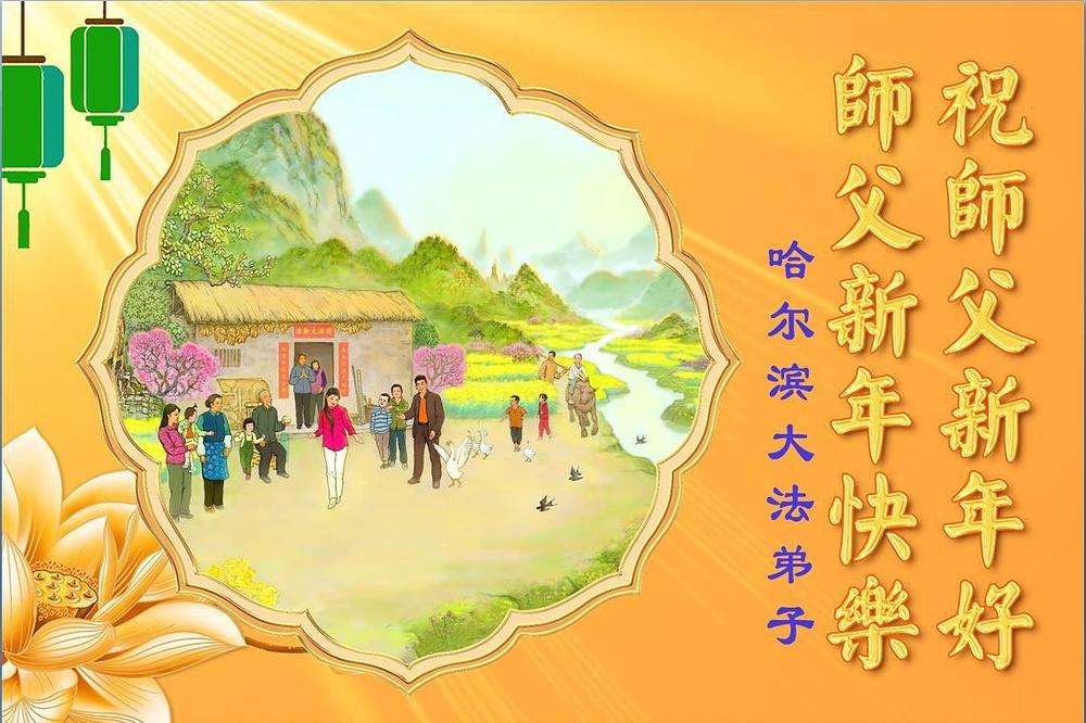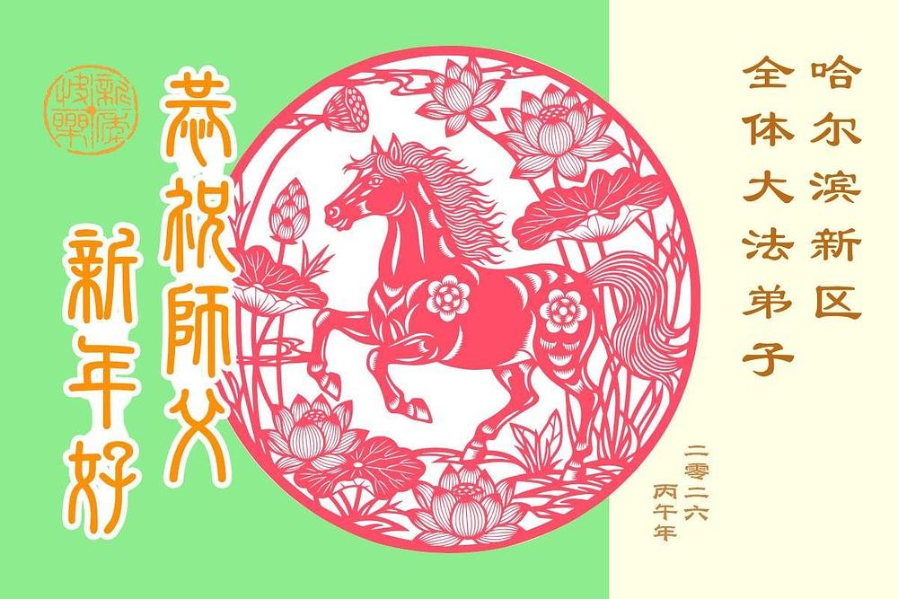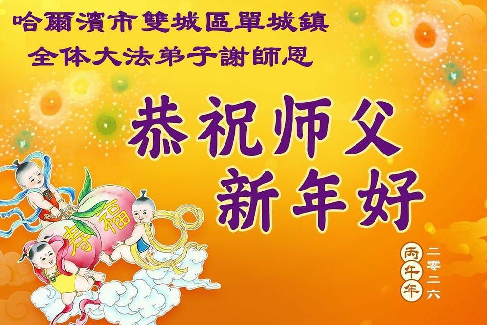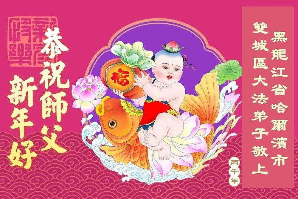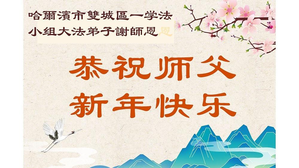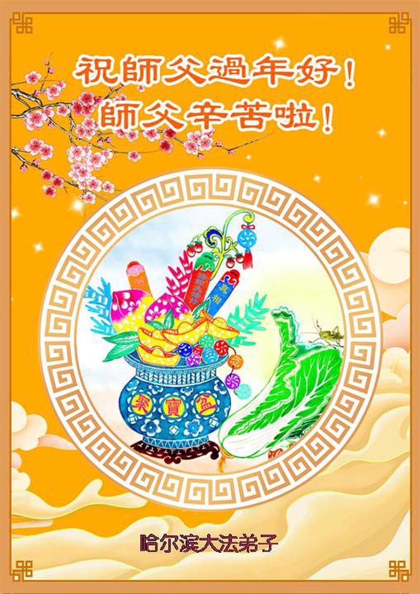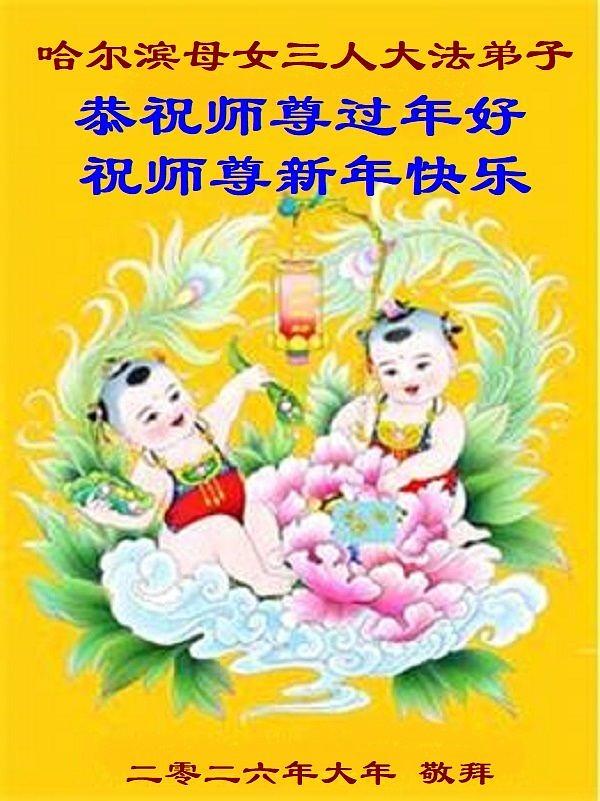 Falun Dafa praktikanti u gradu Harbinu s poštovanjem žele Učitelju Li Hongdžiju srećnu kinesku Novu godinu (104 čestitke)