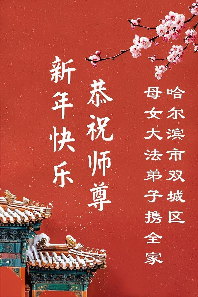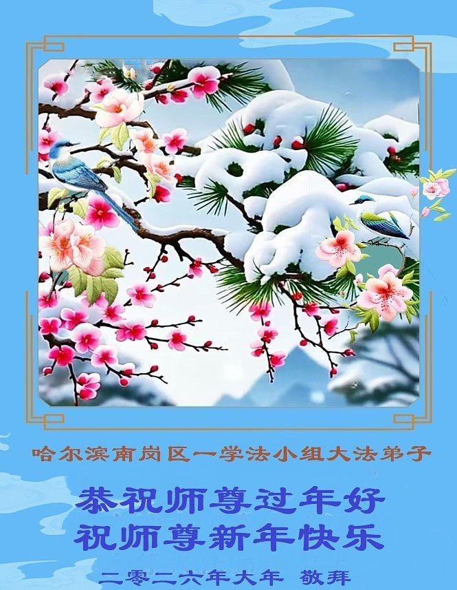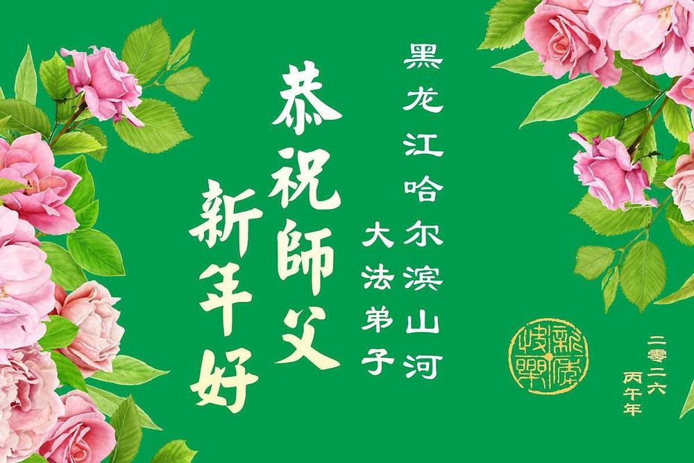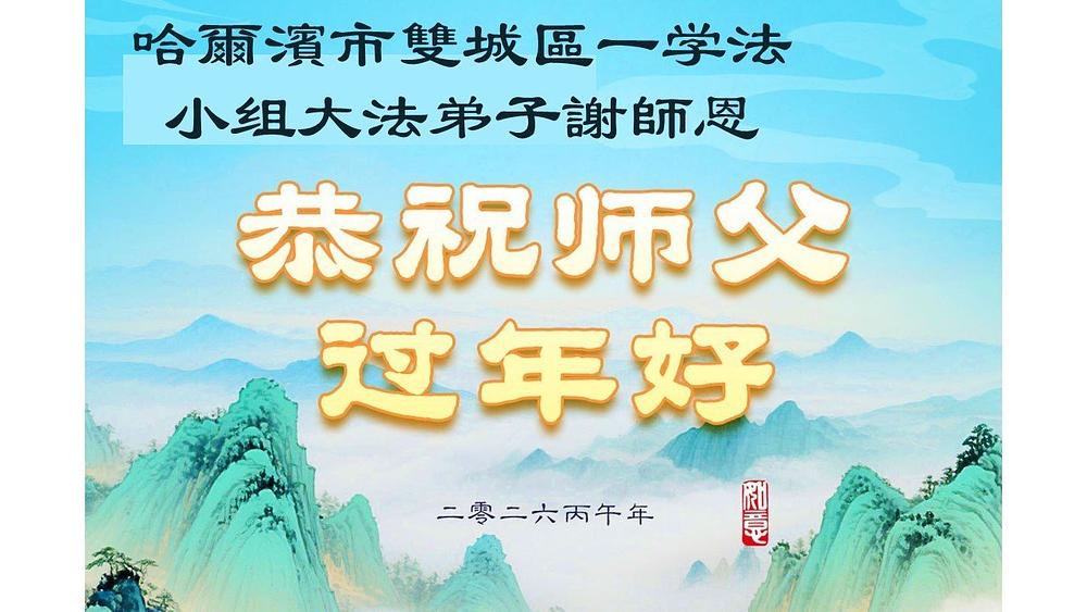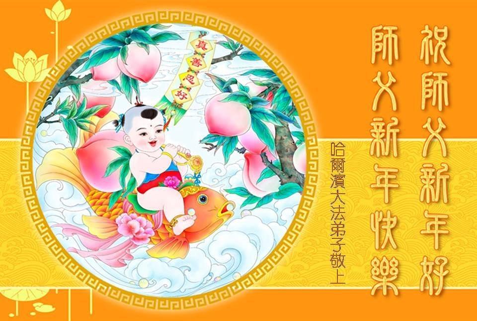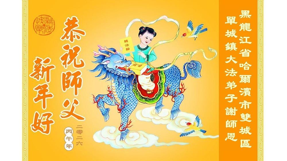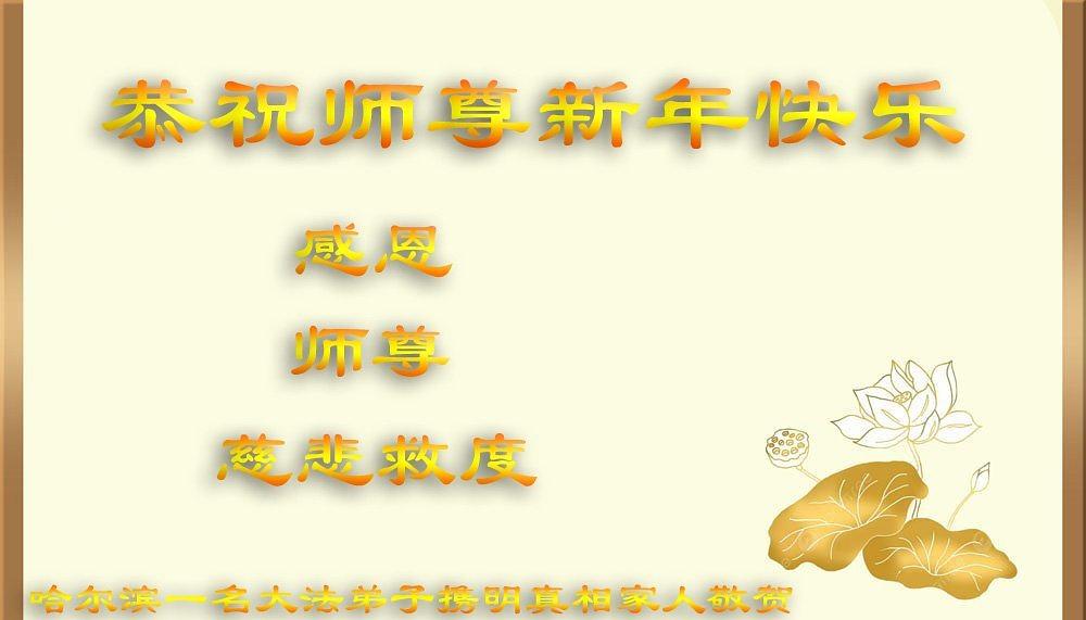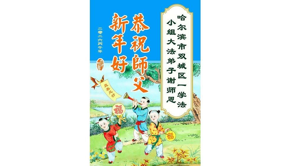 Falun Dafa praktikanti u gradu Harbinu s poštovanjem žele Učitelju Li Hongdžiju srećnu kinesku Novu godinu (104 čestitke)