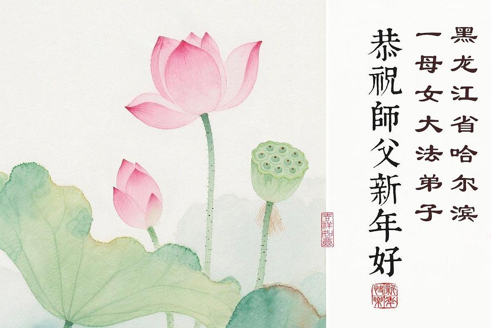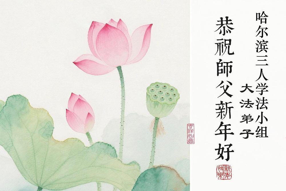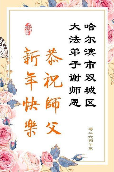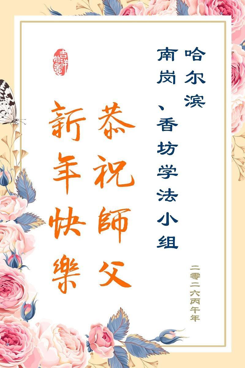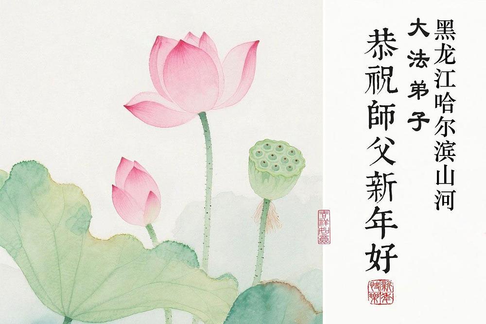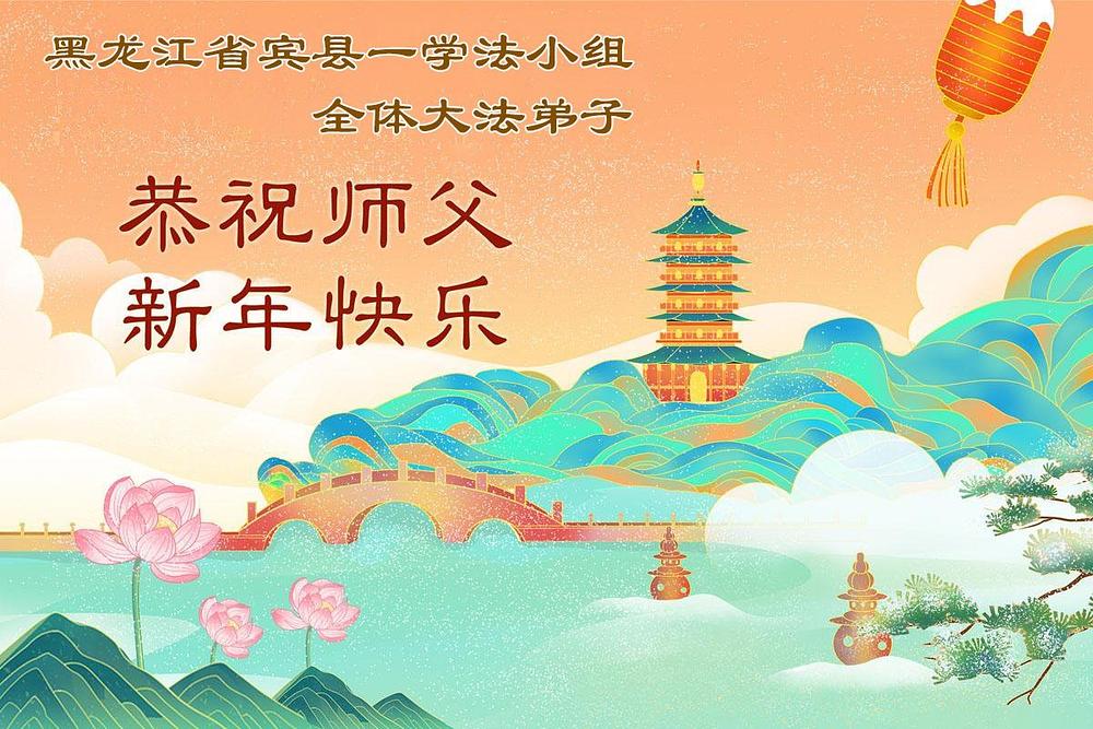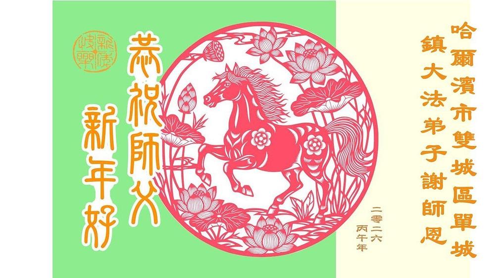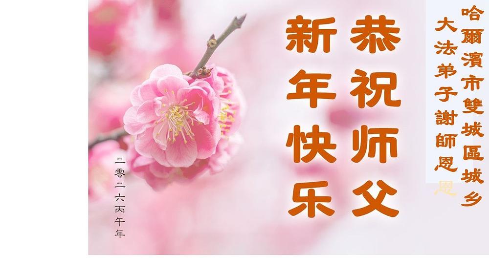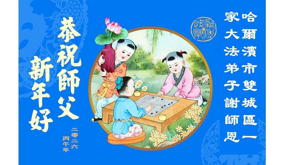 Falun Dafa praktikanti u gradu Harbinu s poštovanjem žele Učitelju Li Hongdžiju srećnu kinesku Novu godinu (104 čestitke)