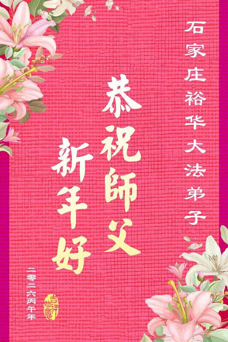Praktikanti Falun Dafe u gradu Šiđadžuang s poštovanjem žele učitelju Li Hongdžiju srećnu kinesku Novu godinu (105 čestitki)