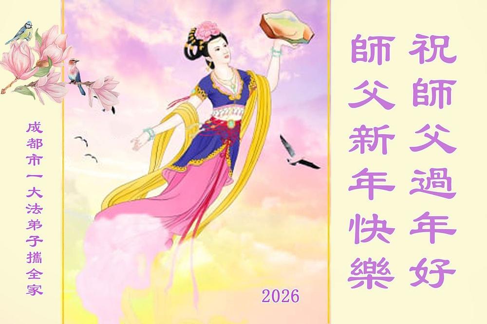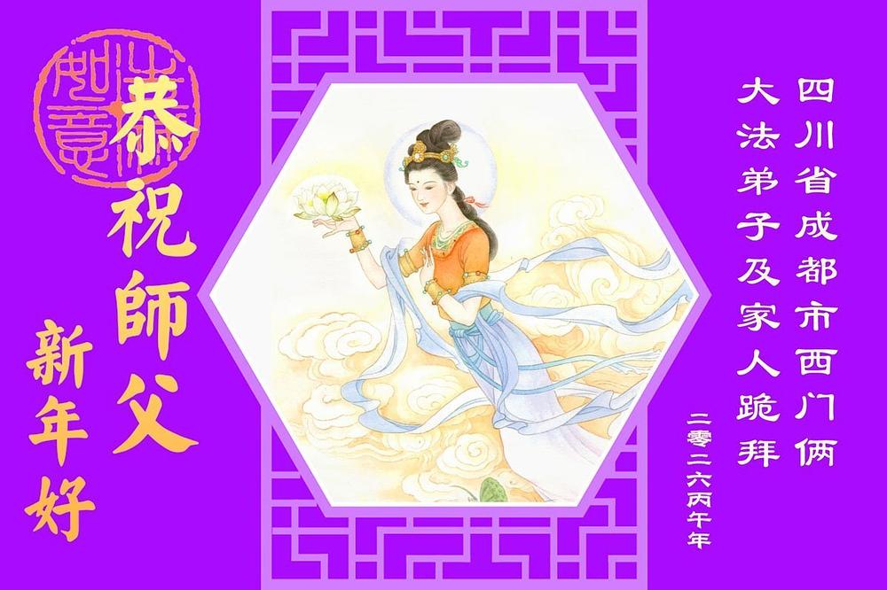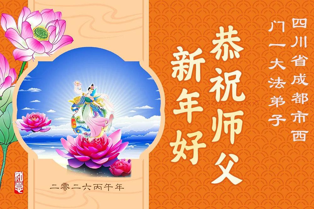 Falun Dafa praktikanti u gradu Čengduu s poštovanjem žele učitelju Li Hongdžiju srećnu kinesku Novu godinu (104 čestitke)