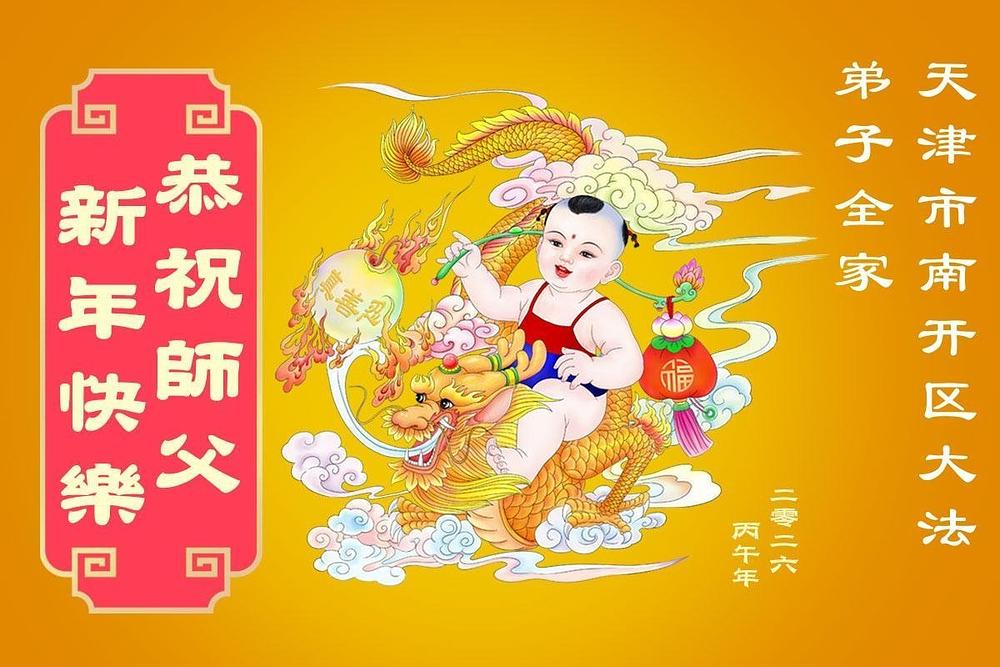 Falun Dafa praktikanti u Tjenđinu i Šangaju s poštovanjem žele Učitelju Li Hongdžiju srećnu kinesku Novu godinu (63 čestitke)