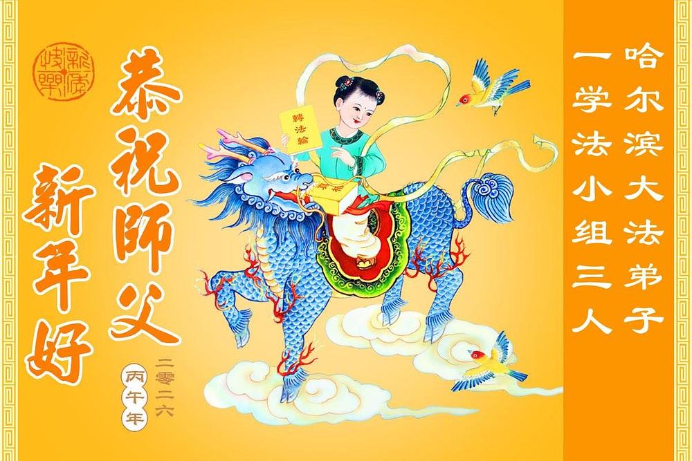 Falun Dafa praktikanti, članovi porodice i pristalice u provinciji Hejlungđang žele poštovanom Učitelju srećnu kinesku Novu godinu!