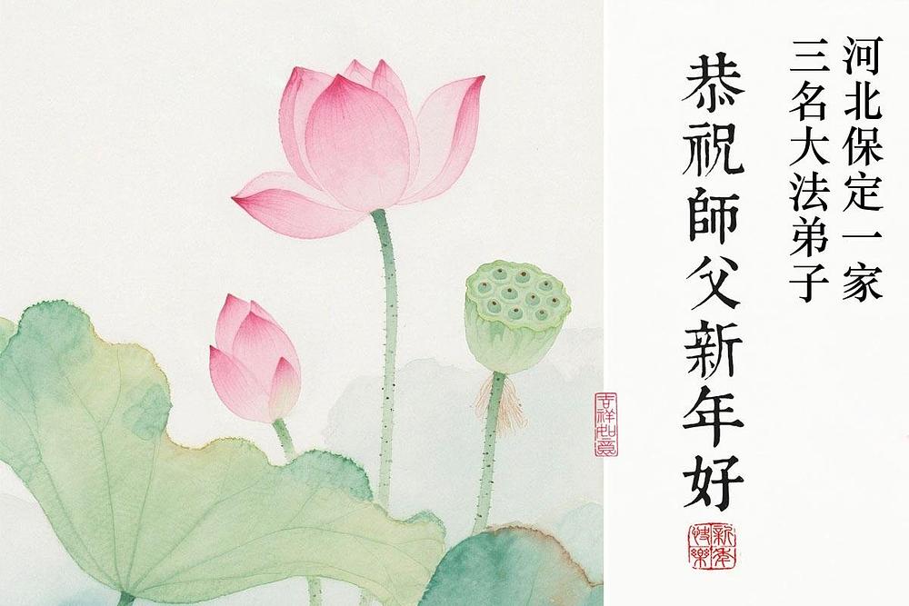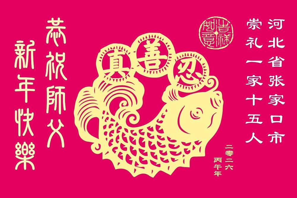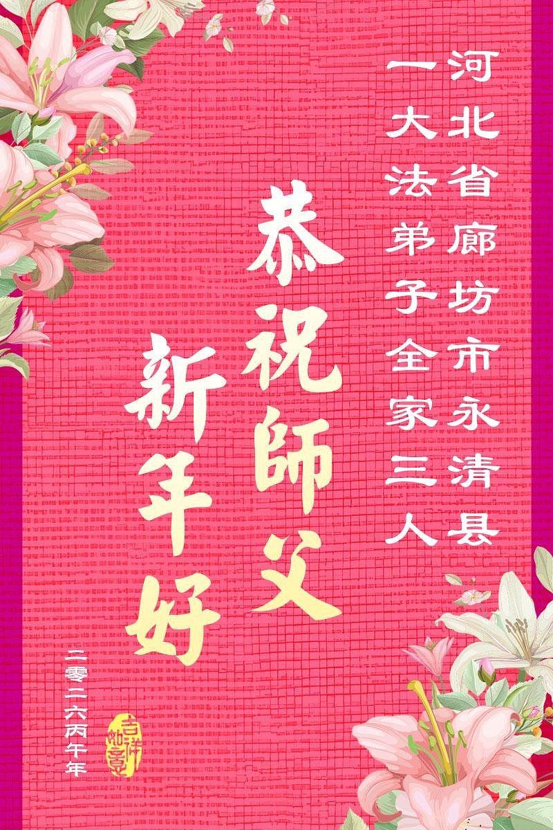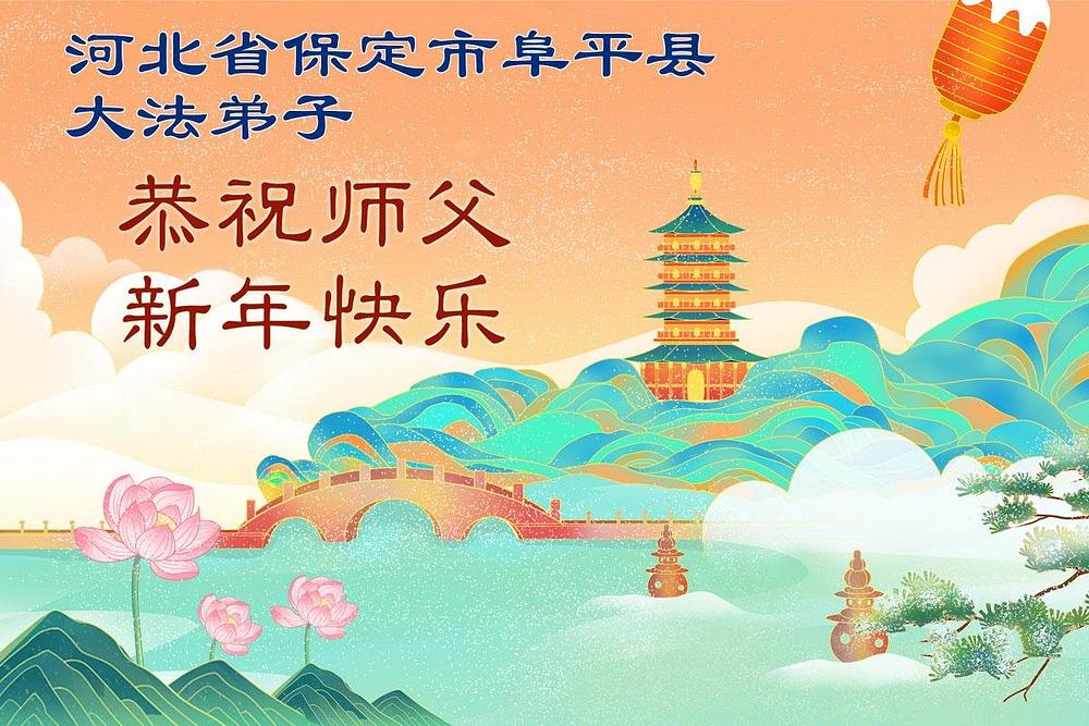 Praktikanti i pristalice Falun Dafe u provinciji Hebej s poštovanjem žele učitelju Li Hongdžiju srećnu kinesku Novu godinu (116 čestitki)