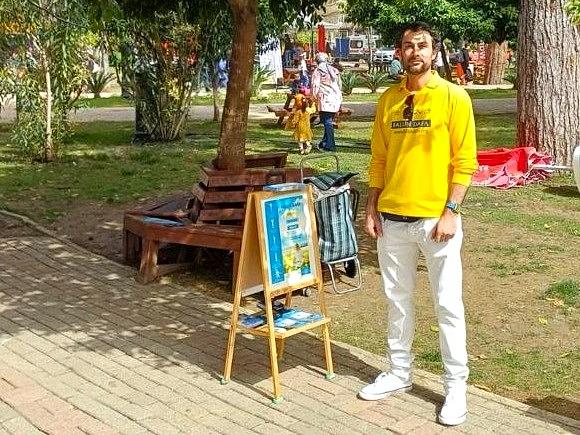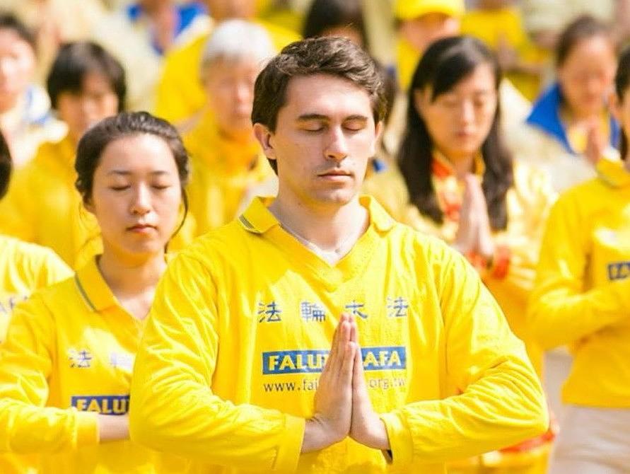 Leo učestvuje u događaju kako bi predstavio Falun Gong.