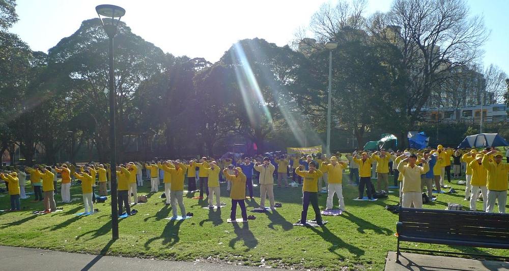 Za neke je meditiranje u parku relaksirajući hobi, ali od drugih ljudi to zahtijeva odlučnost i hrabrost. Ljudi iz cijele Australije su se 5. septembra ove godine okupili u Belmore parku u Sydneyu, izvodeći Falun Gong vježbe. Dan kasnije su sudjelovali na konferenciji za razmjenu iskustava, gdje se govorilo o napretku u kultivaciji, ponekada čak i suočavajući se sa brutalnim progonom Falun Gonga u Kini.