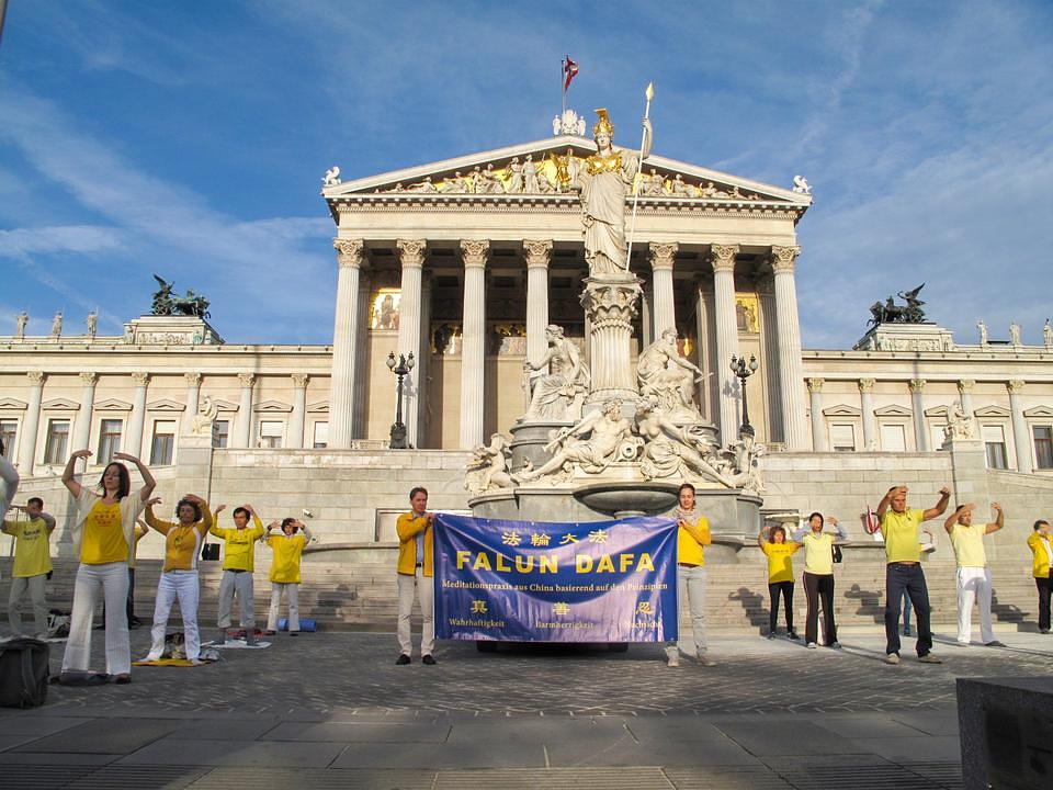 Praktikanti iz više od 30 zemalja su 19. septembra u Beču prisustvovali Evropskoj konferenciji za razmjenu iskustava za 2015. godinu. Prije konferencije jedan se broj praktikanata okupio da bi meditirali ispred zgrade austrijskog parlamenta.