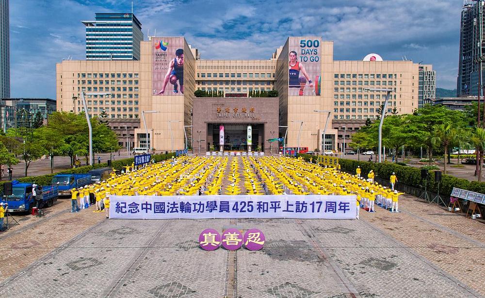 Više od 1.000 praktikanata Falun Gonga je sudjelovalo u velikoj grupnoj vježbi u Gradskom parku u Taipeiu 24. aprila 2016. godine. Tajvanska Falun Gong asocijacija je organizovala ovaj događaj kako bi se obilježila 17. godišnjica miroljubivih protesta koji su održani 25. aprila u Pekingu i kako bi se pozvala Kineska komunistička partija (KKP) da okonča progon Falun Gonga.