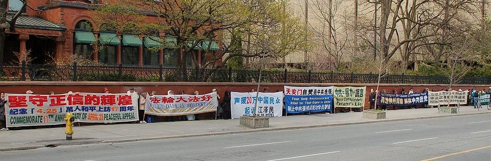 „Sve što smo tražili je bilo mirno okruženje za prakticiranje Falun Gonga“, kazala je gđa Zhang Guizhen na konferenciji za novinare ispred Kineskog konzulata u Torontu, 25. aprila 2016. godine. „Protesti održani prije 17 godina su bili u potpunosti miroljubivi“.