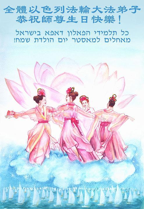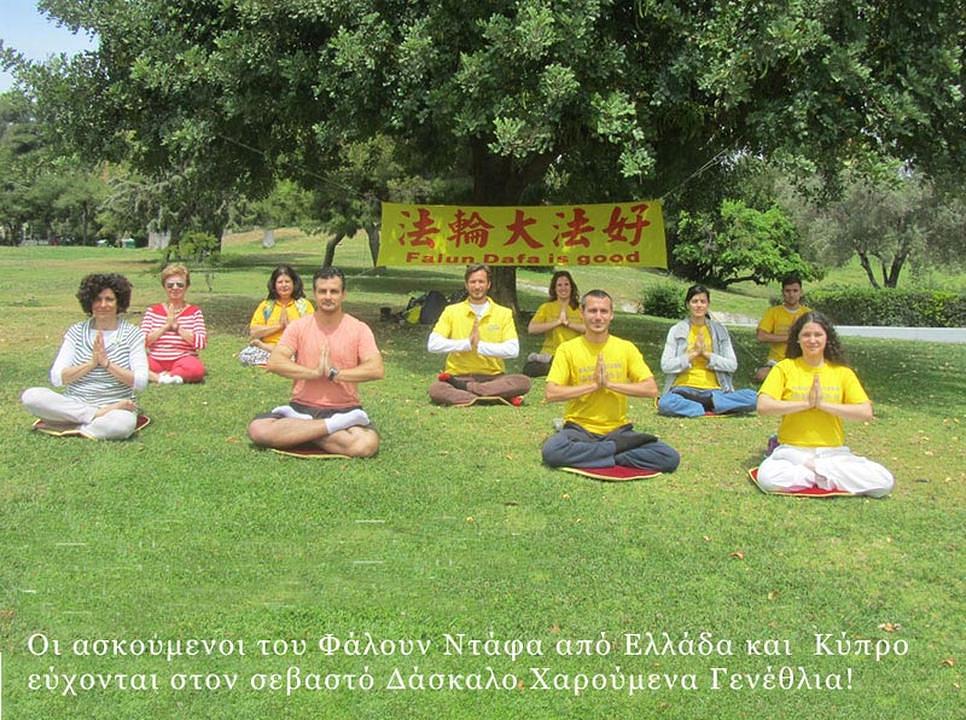 Praktikanti iz Španije, Grčke i Izraela proslavljaju Svjetski Falun Dafa dan i 24. godišnjicu predstavljanja Falun Dafa u javnosti i s poštovanjem žele cijenjenom Učitelju sretan rođendan!