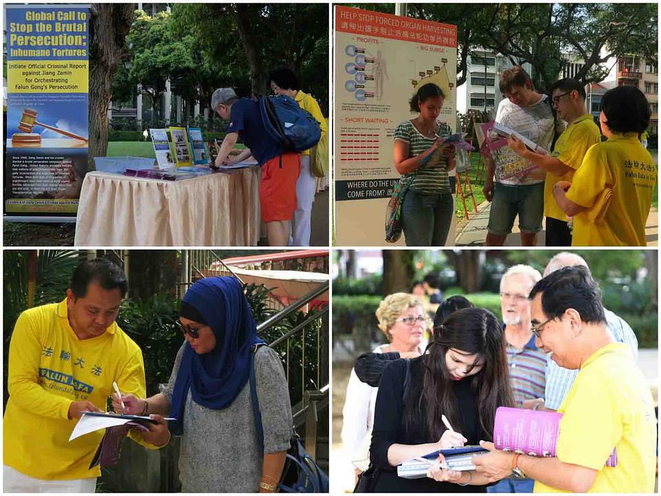 Praktikanti Falun Gonga iz Singapura su 11. jula 2016. godine nizom aktivnosti u parku Hong Lim obilježili 17 godina miroljubivog otpora progonu koji vrši Kineska komunistička partija (KKP). Oni su upoznavali ljude sa zločinima KKP, žetvi organa uzimanih od živih praktikanta Falun Gonga, prikupljali su potpise na krivične prijave protiv Jiang Zemina, glavnog zločinca odgovornog za progon, i održali bdijenje uz svijeće u znak sjećanja na žrtve progona.