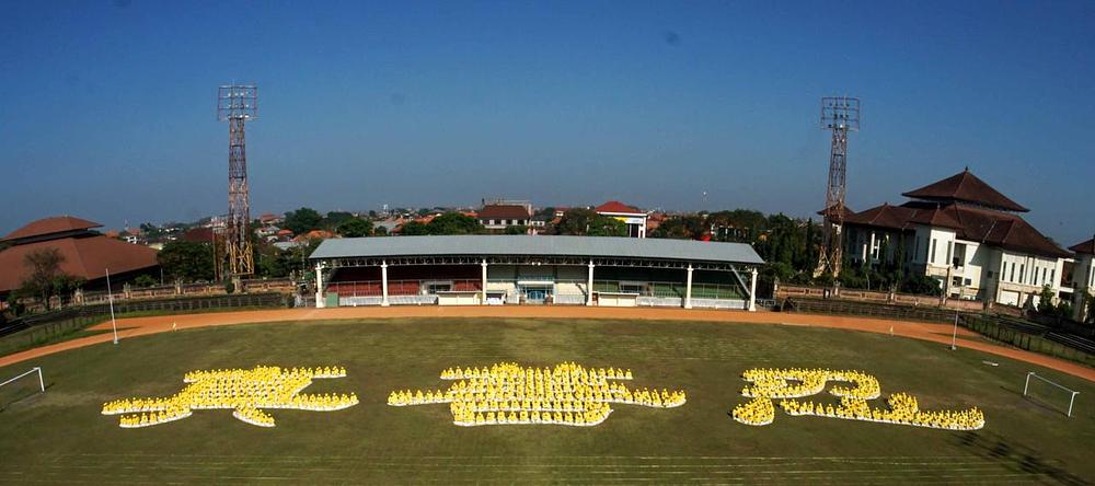 Blizu 1.000 praktikanata Falun Dafa se okupilo u Denpasaru, glavnom gradu otoka Bali u Indoneziji, 27. avgusta 2016. godine na Falun Dafa konferenciji za razmjenu iskustava za oblast Azija-Pacifik. Grupa je izvodila Falun Dafa vježbe i napravila kineske karaktere svojim tijelima prije početka konferencije.