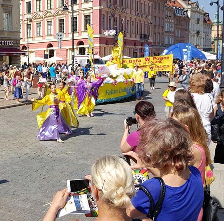 Paradom na 10. Festivalu multikulture u Varšavi, u Poljskoj, 28. avgusta 2016. godine, praktikanti su demonstrirali ljepotu Falun Gonga gledaocima.