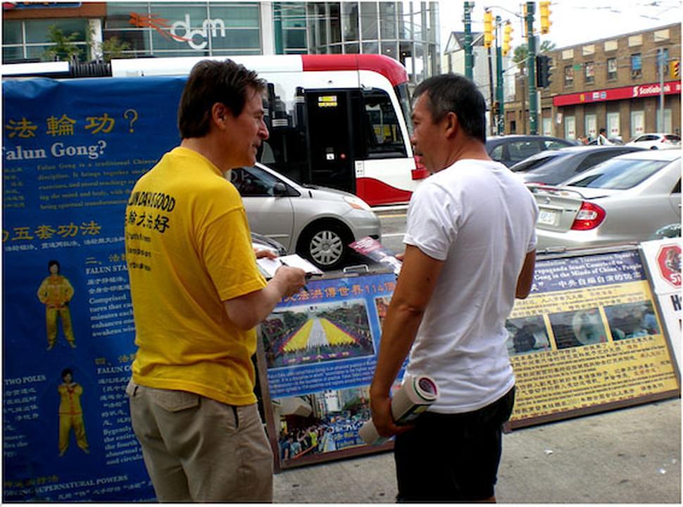 Zapadnjački su Falun Dafa praktikanti proteklog vikenda održali u Torontu „Veliki zid istine“ u centru grada. Držali su transparente kojima su objašnjavali progon i prikupljali potpise.
