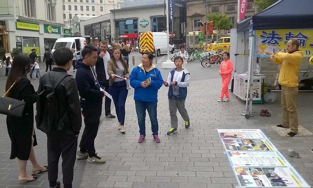 Čim su lokalni praktikanti Falun Gonga postavili svoj štand, približilo im se sedam kineskih studenata, koji u željeli doznati pojedinosti o Falun Gongu i progonu. Čim su saznali istinu, zatražili su od praktikanata da im pomognu da napuste Komunističku partiju.