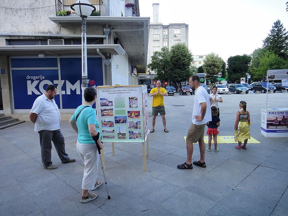U Pazinu je 23.06. održan info dan. Praktikanti su demonstrirali vježbe i dijelili letke te upoznavali ljude s činjenicama progona Falun Gonga u Kini. Ljudi bi se zainteresirano zaustavljali da pitaju i čitali bi postere, a neki prolaznici su potpisali peticiju u znak podrške. Djeca su pokazala izrazito zanimanje za vježbe te su gledajući praktikante oponašali pokrete vježbi. Jedna djevojčica je rekla: „Naučit ćemo sve vježbe i pokazati ih mami.“ Jedna druga djevojčica je rekla, gledajući praktikante kako izvode drugu vježbu: „Dok tako drži ruke, ono se okreće.“ Jedan dječak je rekao gledajući letak o progonu: „Kako je to glupo. To su im napravili samo zato što su im rekli što misle.“ Jedan gospodin je prišao praktikantima zatraživši da mu više objasne o praksi. Izjavio je da je izdaleka promatrao praktikante duže vremena te da ga je privukla njihova smirenost, konstatirajući da je to upravo ono što je potrebno današnjim ljudima. Uzeo je letak te rekao da odmah ide kući pokazati ga kćeri, da ne želi da se više svađaju i da bi oni trebali prakticirati Falun Gong. Na samom kraju info dana dok se spremao štand, došao je postariji gospodin i rekao „Ali, ja nisam uzeo letak!“, misleći da je zakasnio. Praktikanti su mu dali letak koji je radosno uzeo. Budući da voli čitati povijesne knjige praktikanti su mu rekli za Devet komentara o Komunističkoj partiji. Pitao je kakav je sadržaj teksta jer on sam je izrazito protiv Partije. Praktikanti su rekli da Devet komentara govore istinu o Komunističkoj partiji. Rekao je da će pročitati i puno se zahvalio na letku.