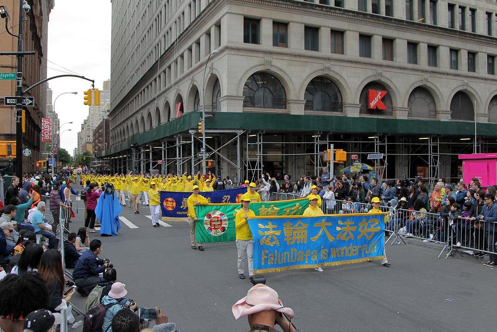 Parada se kretala i kroz Astor Place Plazu, dok su mnogi njujorčani sjedili u restoranima ili vani na svojim trjemovima i gledali paradu. Mnogi su pravili fotografije dok je dio parade sa Falun Gongom prolazio pokraj njih.