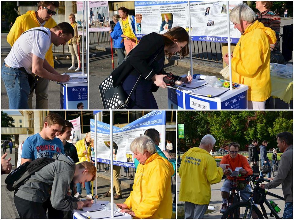 U St. Petersburgu su praktikanti 20. jula na više lokacija organizovali razne događaje kako bi time podigli svijest ljudi o progonu. Oni su organizovali i miroljubivi protest ispred kineske ambasade. U ambasadu je došla i kineska delegacija i vidjela proteste.
