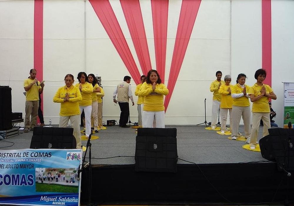 Ministarstvo zdravlja Perua je pozvalo lokalne praktikante Falun Gonga da stanovnicima grada Comasa predstave pet Falun Gong vježbi. Ovaj je društveni događaj zajednički bio organizovan 25. avgusta 2017. od strane Ministarstva zdravlja i grada Comasa, u Gradskom centru za stare osobe grada Comasa. Vlasti iz ministarstva znaju šta je Falun Gong i u više su navrata razgovarali sa praktikantima o mogućnosti organizacije sličnog događaja.