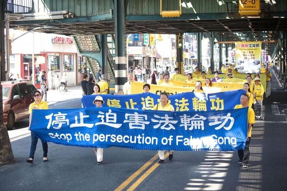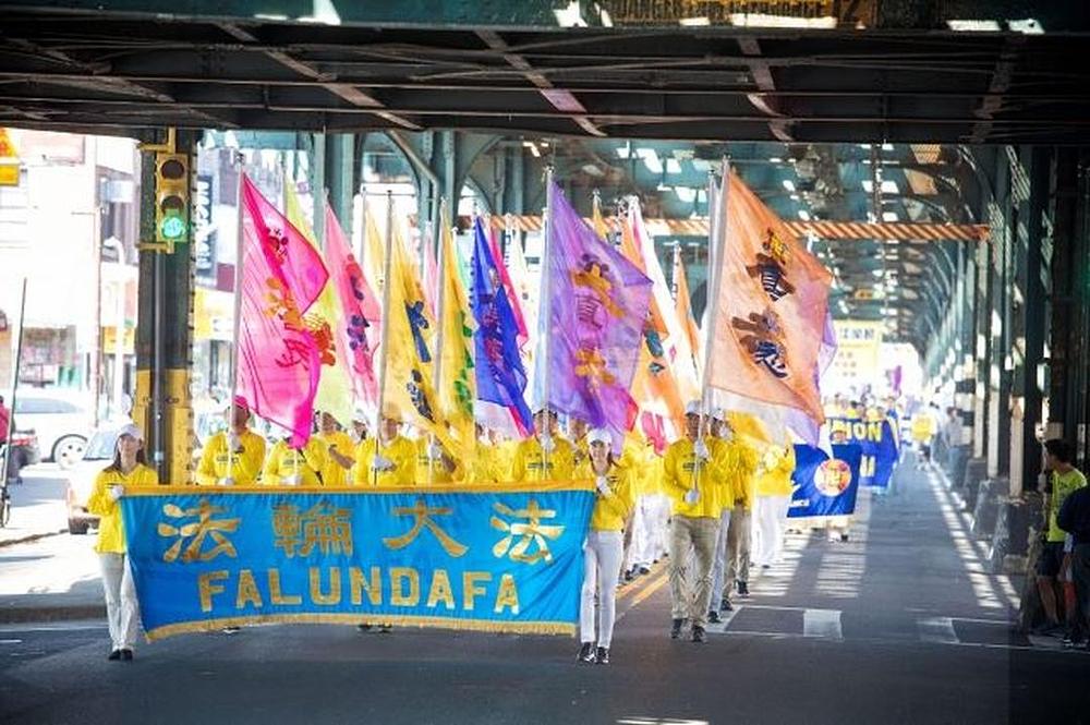 Više od 300 praktikanata Falun Gonga učestvovalo je na maršu 17. septembra 2017. u Bensonhurstu, drugoj po veličini kineskoj četvrti u Brooklynu. Marš je predvodio Tian Guo Marching Band, a iza njih su slijedile sekcije demonstracije vježbi, splav, tim barjaktara i dobošari.