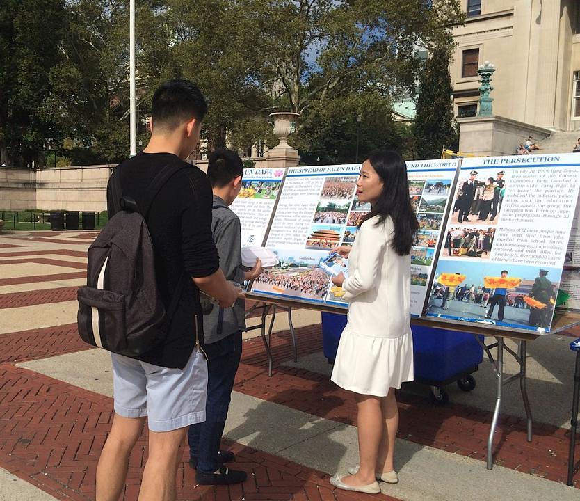 Falun Dafa klub sa univerziteta Columbia u New Yorku je na kampusu univerziteta održao foto izložbu u periodu od 9. do 12. oktobra 2017. Posjetitelji su postavljali pitanja o praksi, potpisivali su peticiju kojom traže od Komunističke partije Kine (KPK) da prekine zabranu Falun Gonga u Kini i ostavili svoje e-mail drese da i dalje primaju informacije o Falun Dafa.