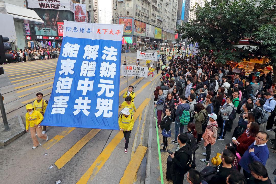 Praktikanti Falun Gonga su na trgu Edinburgh u Hong Kongu održali skup i paradu povodom Svjetskoga dana ljudskih prava 10. decembra 2017. u znak protivljenju progonu Falun Gonga u Kini koji i dalje traje. Brojni članovi zakonodavnog vijeća i renomirani advokati za ljudska prava su govorili na skupu, pozivajući na okončanje zločina koji se dešavaju u matici Kini.
