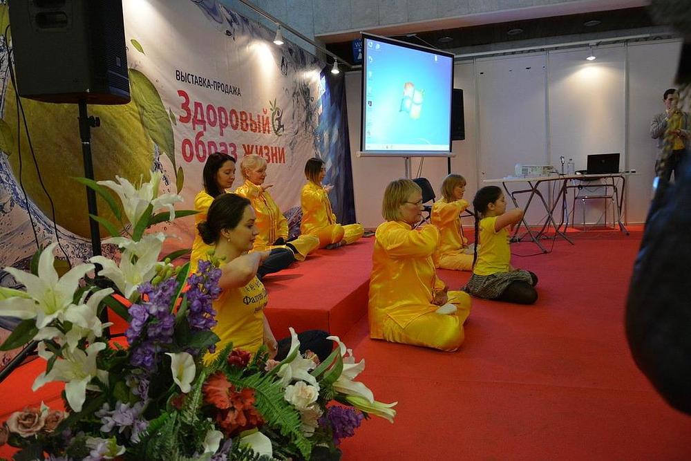 Praktikanti su dva puta vježbali Falun Gong vježbe. Mnogi učesnici Sajma su ih pažljivo pratili. Neki od njih su se prijavili za besplatnu uvodnu sesiju.