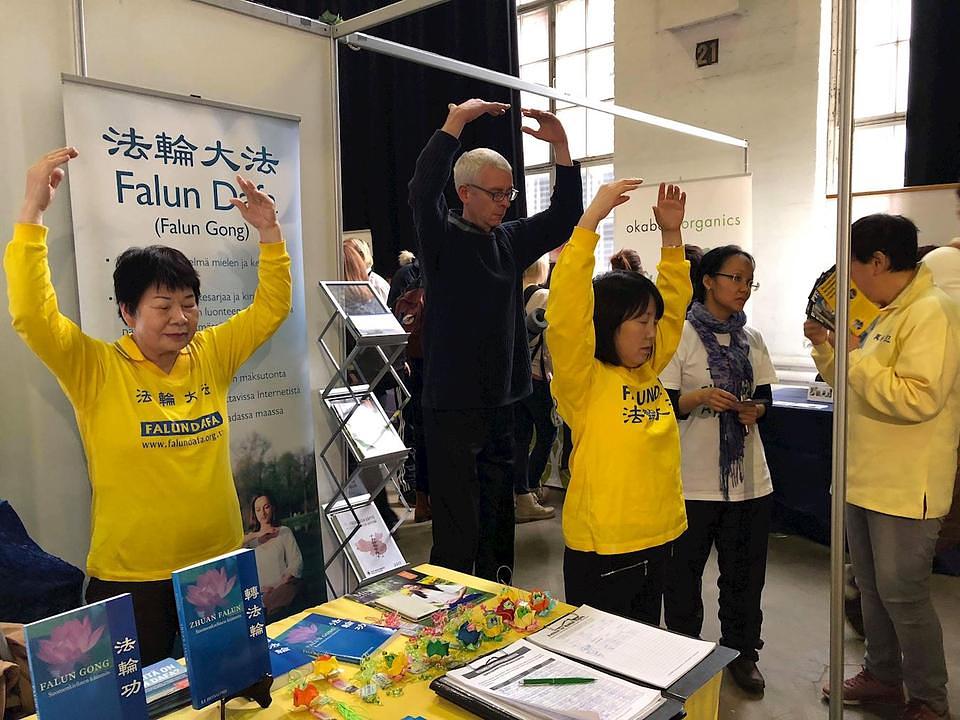 Falun Gong praktikanti iz Finske su učestvovali na šestom festivalu yoge u Helsinkiju od 3. do 4. marta 2018. godine. Bilo je mnogo učesnika, uključujući i one koji su promovirali zdravu hranu, sport i yogu.