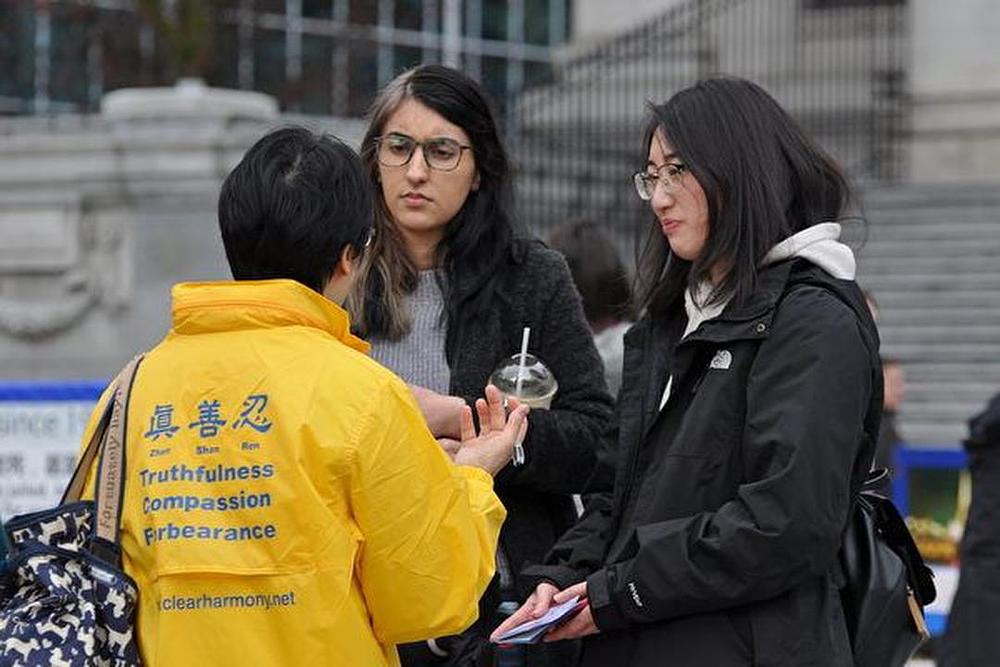 Falun Dafa praktikanti su organizovali štand za prikupljanje potpisa ispred Umjetničke galerije u Vancouveru 8. aprila 2018. Ovom su prilikom tražili od kanadskih vlasti da pozovu kinesku vladu na oslobađanje Sun Xi, kanadske državljanke i poslovne žene koja se nalazi u zatvoru u Kini.