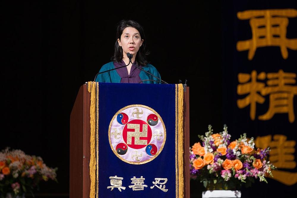 Podijelila je sa prisutnima svoje iskustvo u organizovanju skupa u Harvardskom kampusu, tokom kojeg su brojni medijski radnici, naučnici, privrednici i turisti saznali činjenice o Falun Gongu.