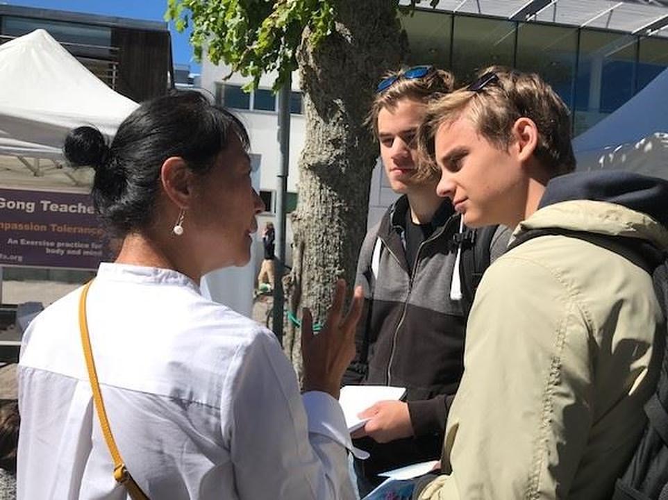 Devetogodišnjak je došao učiti Falun Gong vježbe dva dana za redom. Njegova majka je također imala priliku da razgovara sa Falun Gong praktikantima i da se informira o praksi.