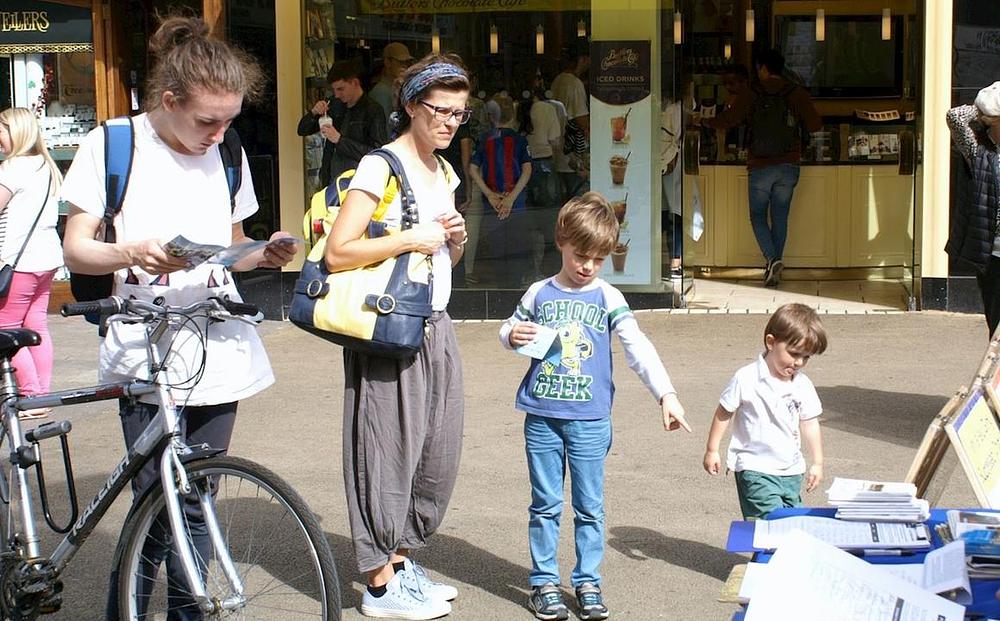 Pored štanda je prolazio jedan kineski par. Čovjek je uzeo novine o Falun Gongu i razgovarao sa praktikantom. Kako bi pokazao svoje protivljenje zločinima kineskog režima, on je odlučio povući svoje članstvo u organizacijama kineske komunističke partije kojima se pridružio kao mladić. Praktikantu je rekao: "Nastavite dobro raditi."