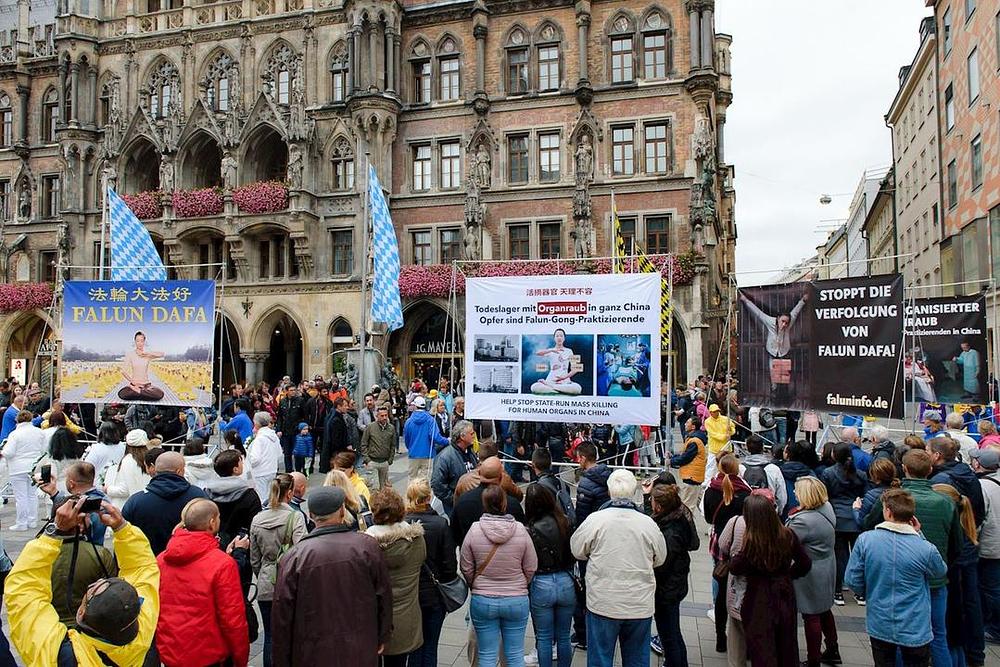 Praktikanti su održali povorku i dva skupa, jedan na Marienplatzu, a drugi na Max-Joseph-Platzu, velikom trgu nasuprot Munich Residenz i čuvene povijesne Operske kuće. Posjetioci su se radi informisali o ovoj drevnoj meditativnoj praksi, a mnogi su na licu mjesta odlučili potpisati peticije pozivajući da se zaustavi progon u Kini.