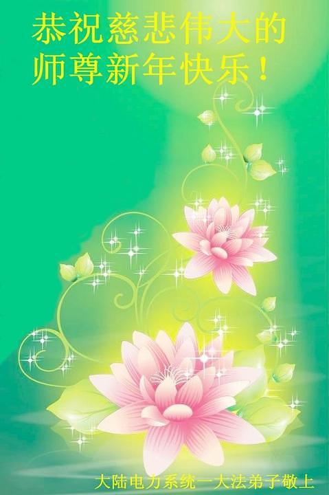 Praktikanti koji rade u sistemu prirodnog gasa u gradu Qinhuangdao u provinciji Hebei su napisali: “Kao Falun Dafa praktikanti, marljivo ćemo slijediti principe Istinitosti-Dobrodušnosti-Tolerancije. Mi sada znamo da kada naiđemo na probleme, to znači da moramo poboljšati naš xinxing. Zahvalni smo Učitelju na tome što nas vodi na putu dok mu mi pomažemo spasavati živa bića. Sretna Nova Godina, Učitelju!”