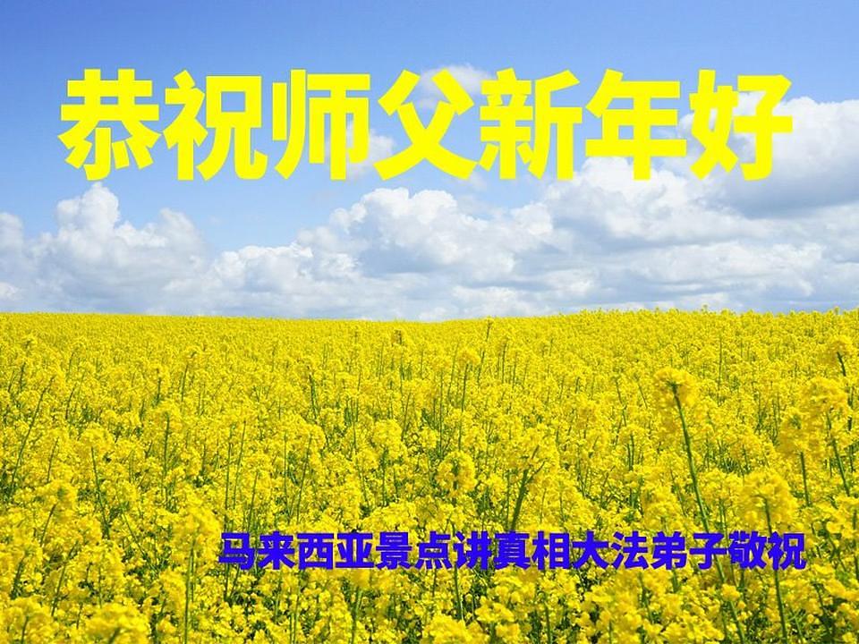 Dafa učenici na turističkim lokacijama za objašnjavanje istine u Maleziji s poštovnjem žele uvaženom Učitelju Sretnu Novu Godinu!
