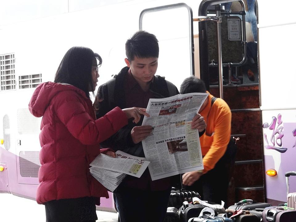 Putnici obično žure ka izlazu za gradski prevoz čim preuzmu svoj prtljag. Kada vidi ljude kako čekaju svoje autobuse, praktikantica gospođa Chen i drugi praktikanti im daju informacije o Falun Gongu i objašnjavaju zašto su milioni Kineza već napustili KPK i njene povezane organizacije.