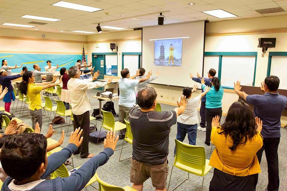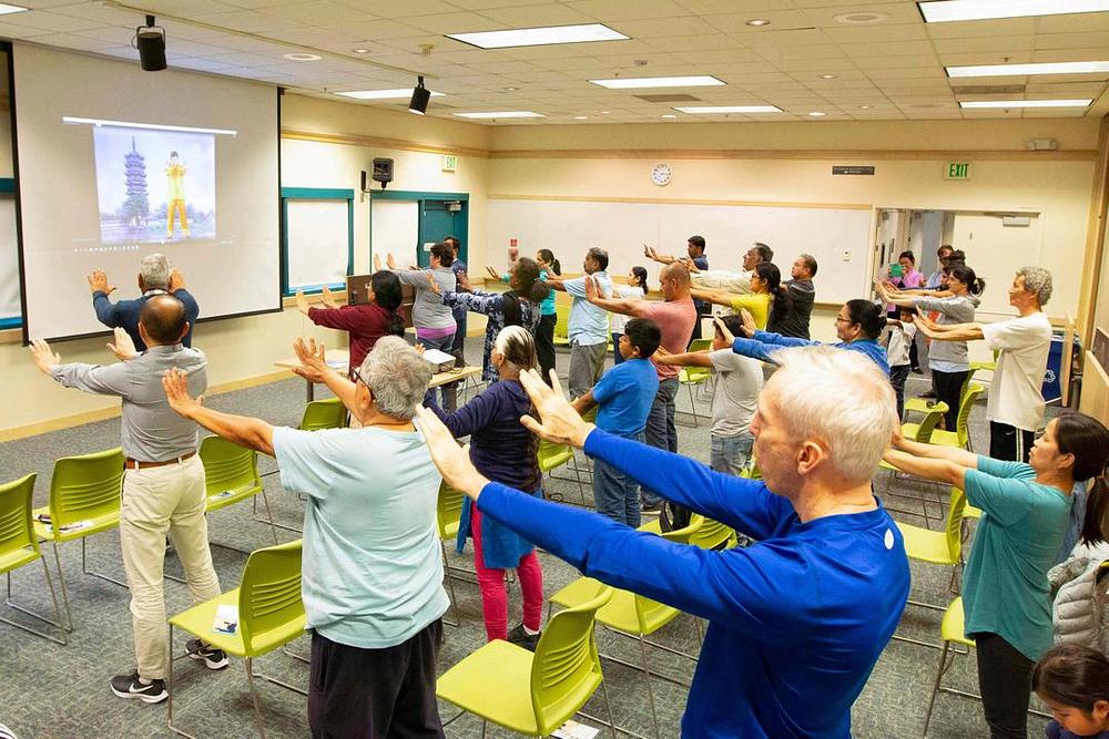 Za vrijeme održavanja besplatne Falun Gong radionice u glavnoj biblioteci u Fremontu, 30. aprila 2019. godine, desetine ljudi iz svih društvenih krugova i različitih etničkih pripadnosti koji žive u području San Francisca su došli učiti.