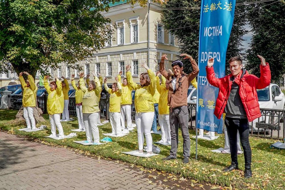 Drugog dana manifestacije Falun Dafa praktikanti su demonstrirali vježbe u centralnom vrtu Botnikovsky koji se nalazi preko puta gradske vijećnice. Mnogi su gledali demonstraciju izvođenja vježbi.